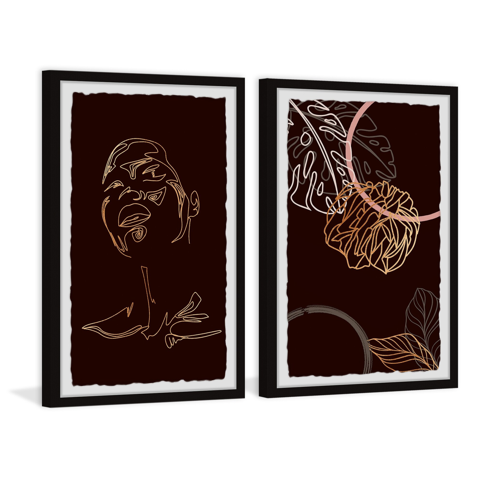 Girl and Tropical Leaves Diptych