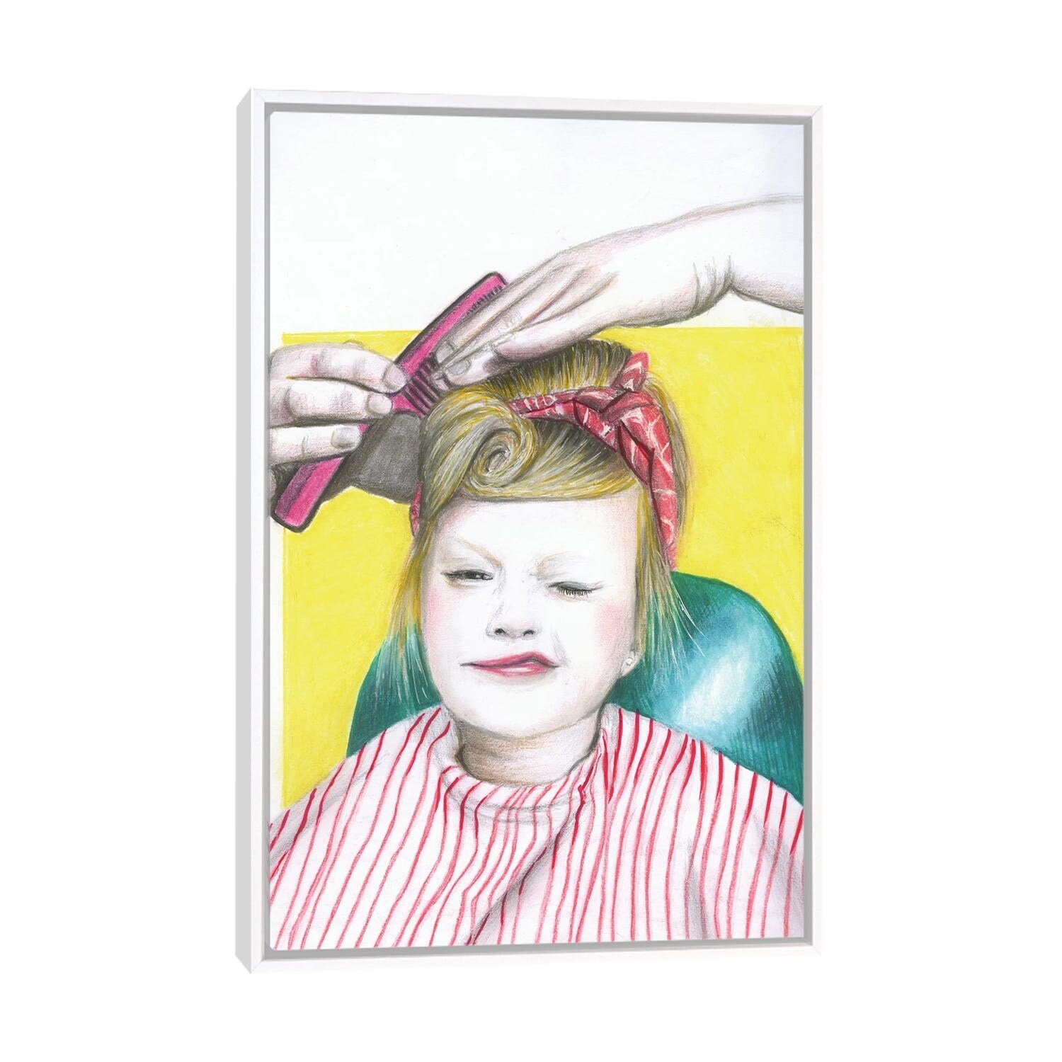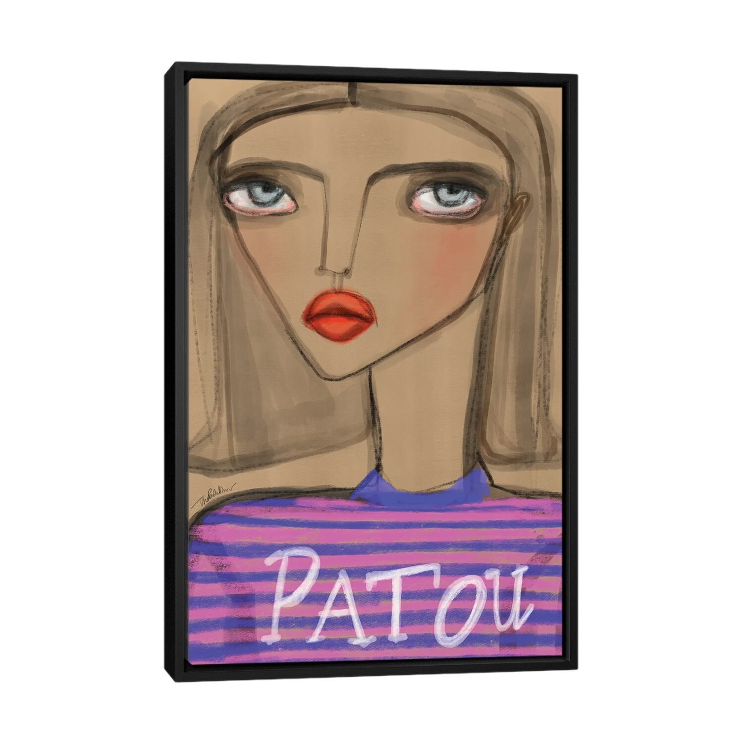 iCanvas "Girl In Pink And Blue Stripes" by Thefashiondrawer Framed