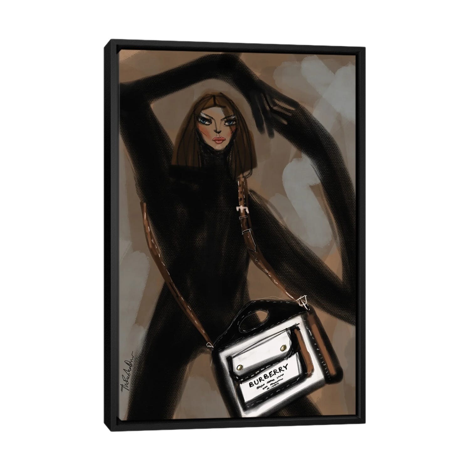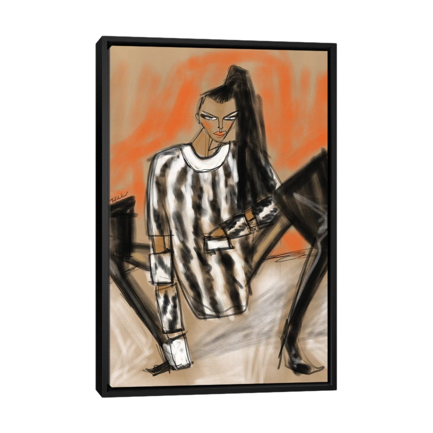 iCanvas "Girl In Black Playsuit" by Thefashiondrawer Framed