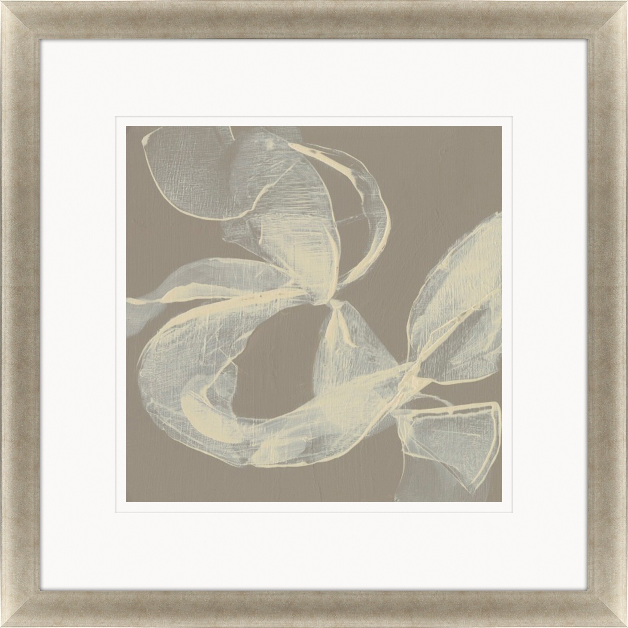 White Ribbon on Beige II Framed Art Giclee Under Glass - Grey