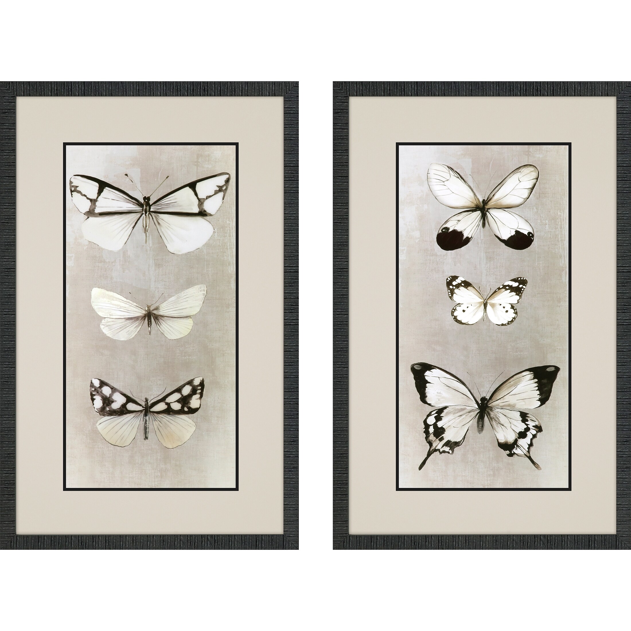 Delicate Butterflies S/2 Framed Art Under Glass - Grey