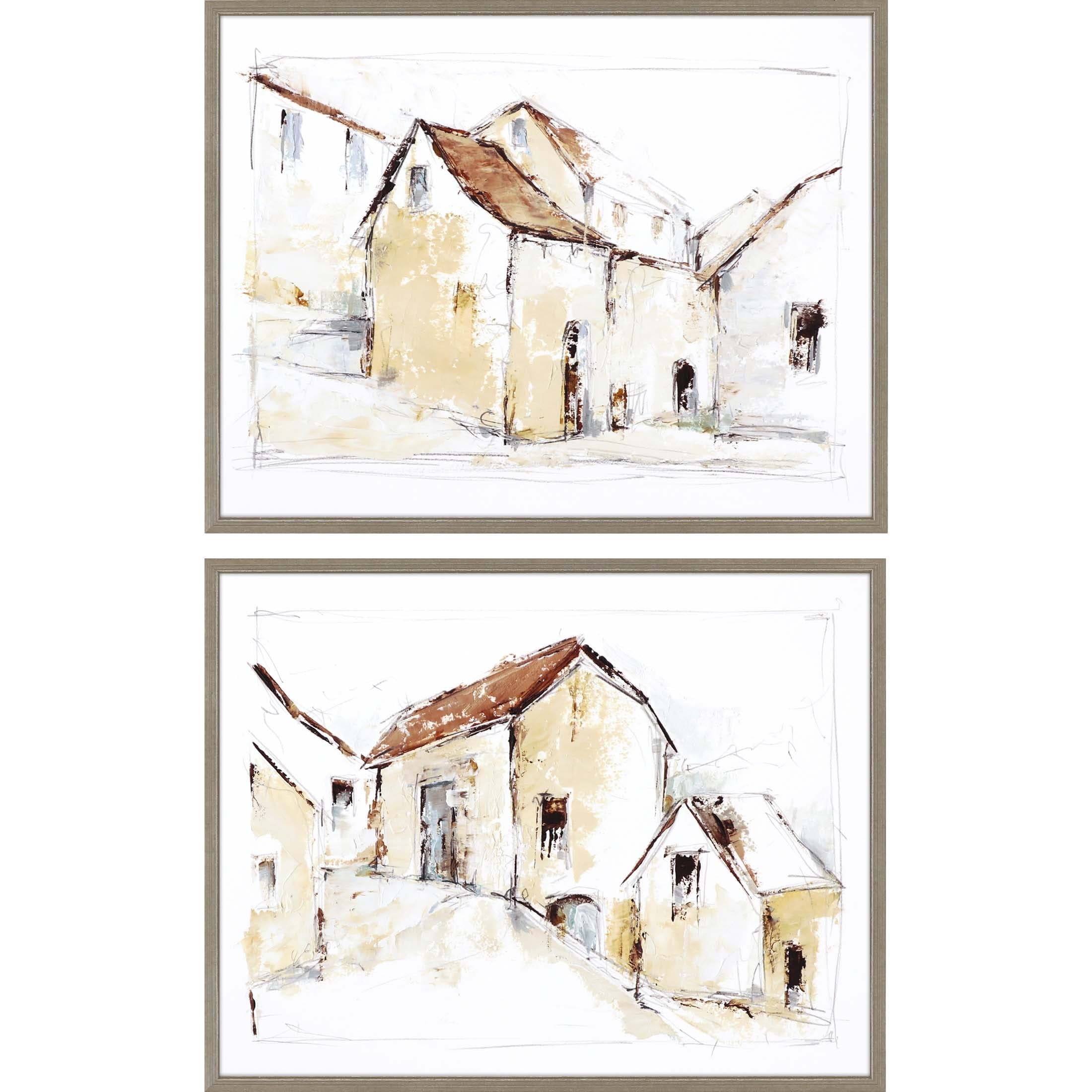 Quiet Streets S/2 Framed Art Giclee Under Glass - Brown