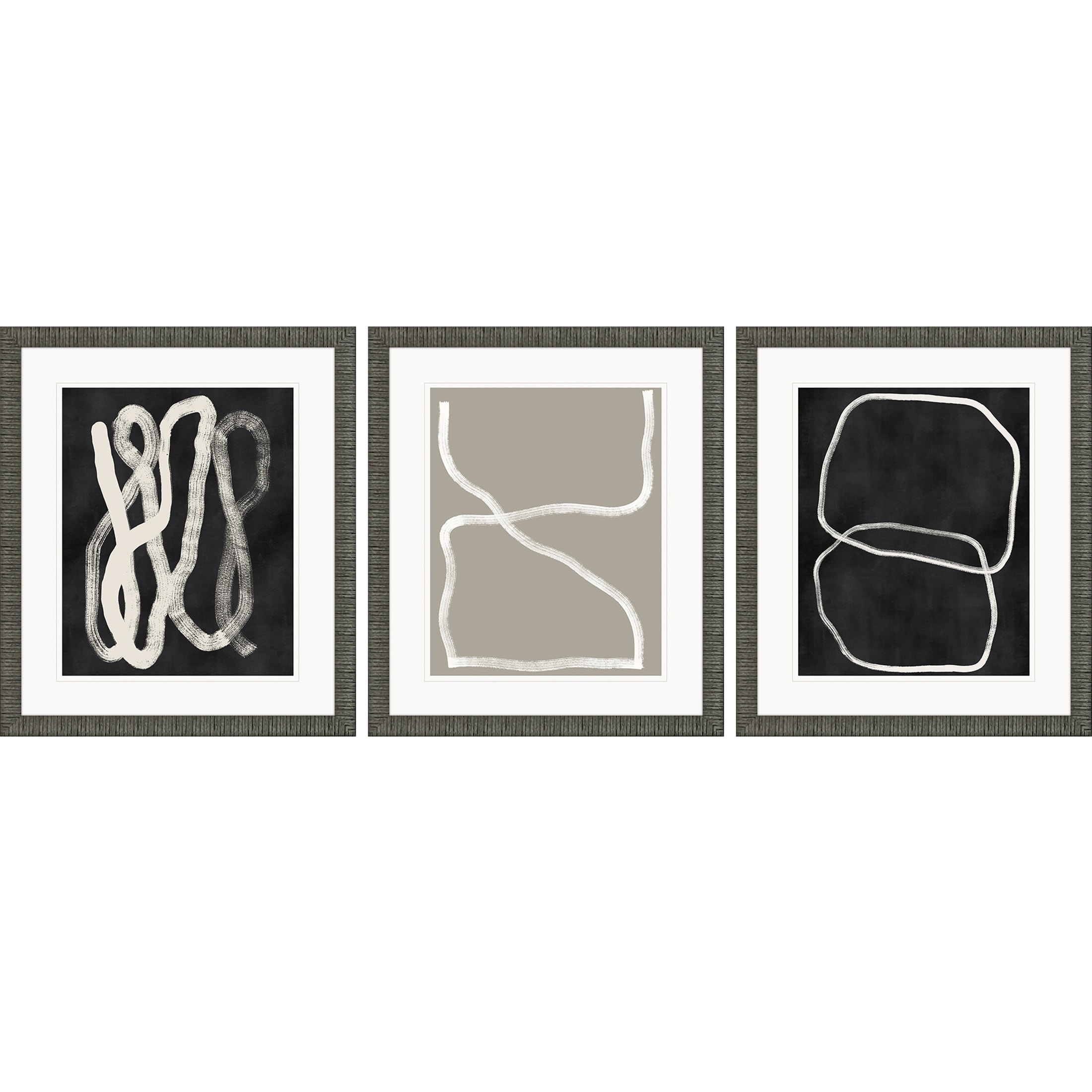 Naive Lines II S/3 Framed Art Giclee Under Glass - Black