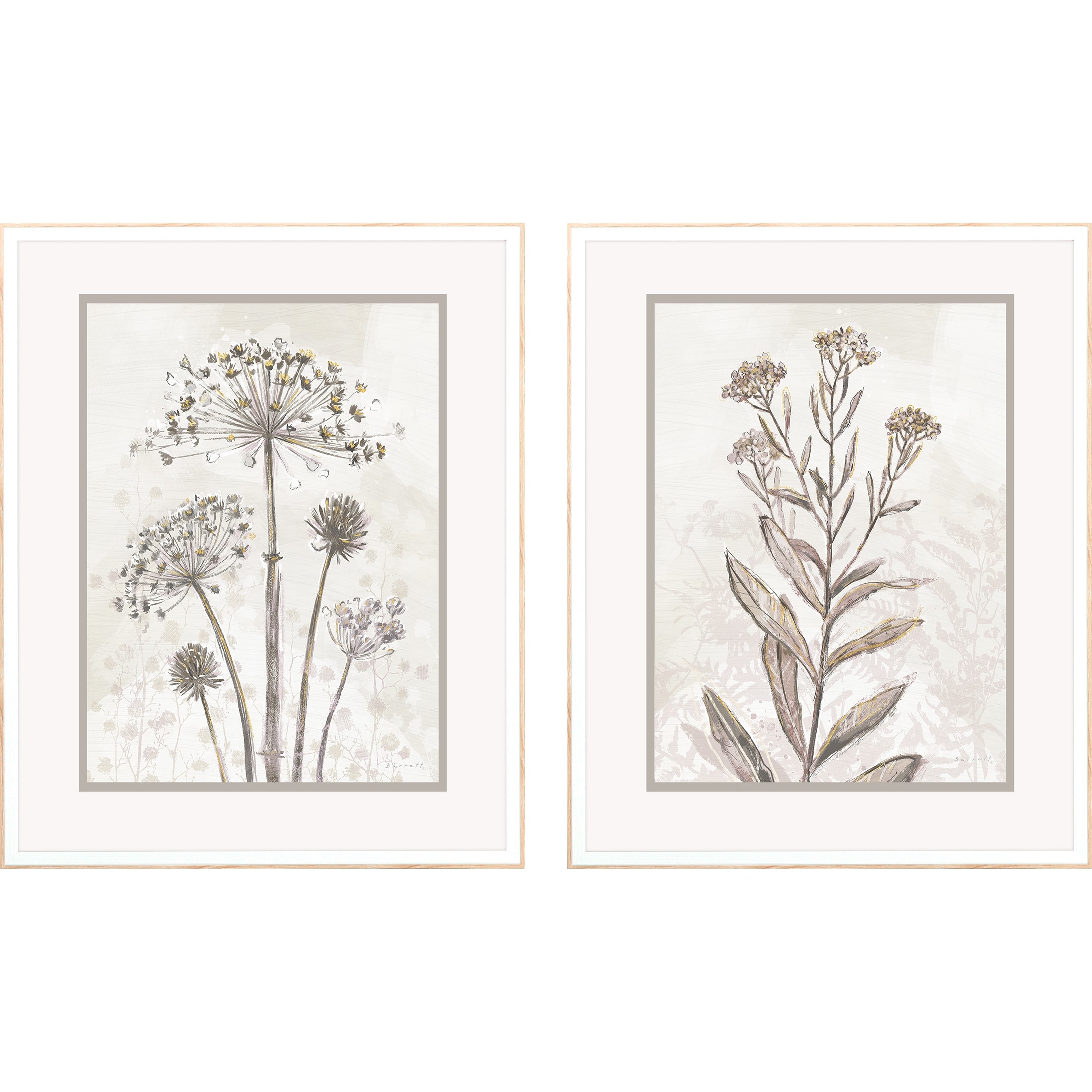 Dried Florals II S/2 Framed Art Exclusive Giclee Under Glass - White