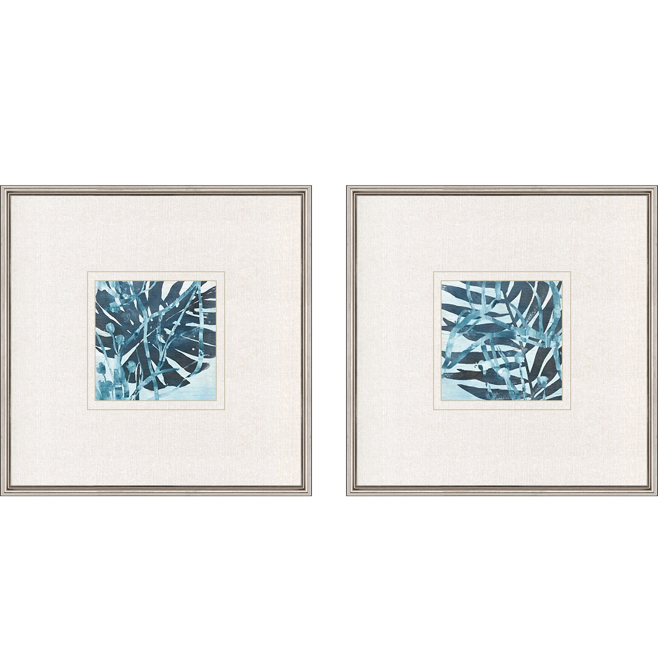 Water Palms I S/2 Framed Art Under Glass - Blue