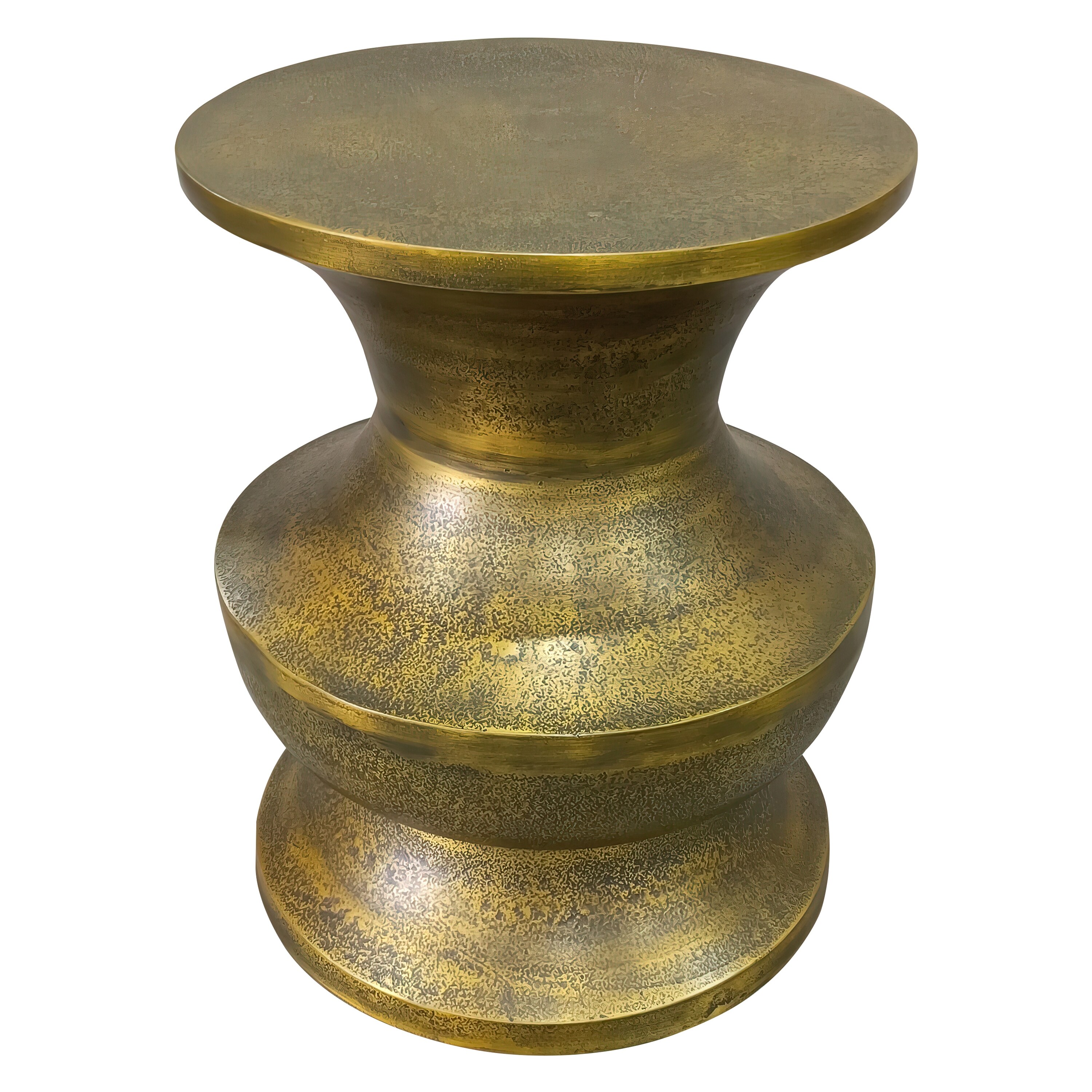 18 Inch Round Accent Side End Table, Turned Pedestal Base, Aluminum, Antique Gold Brass