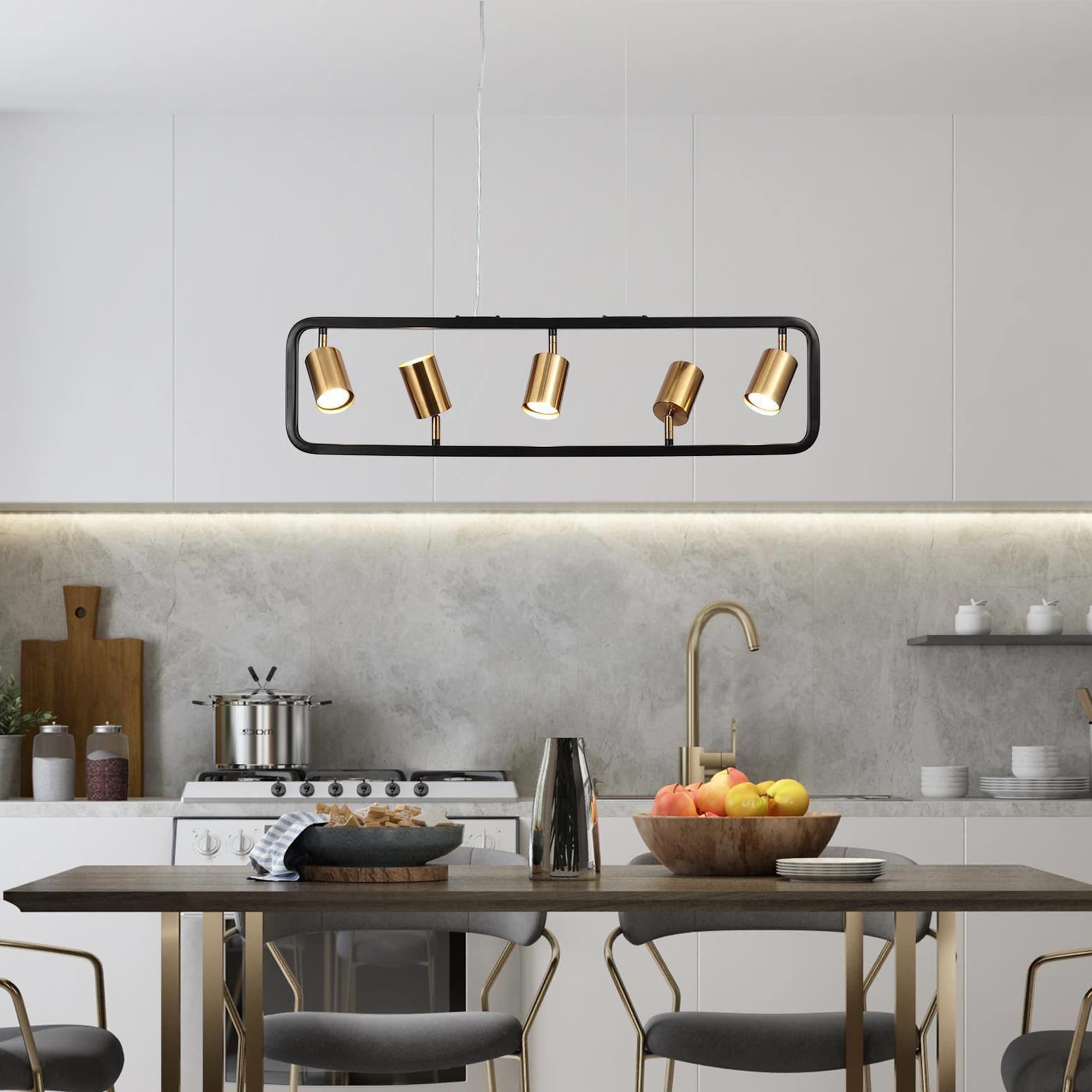 Modern Farmhouse 5-Light Black Gold Rectangle Chandelier Metal Island Lights for Dining Room - 31.5" L x 8" H