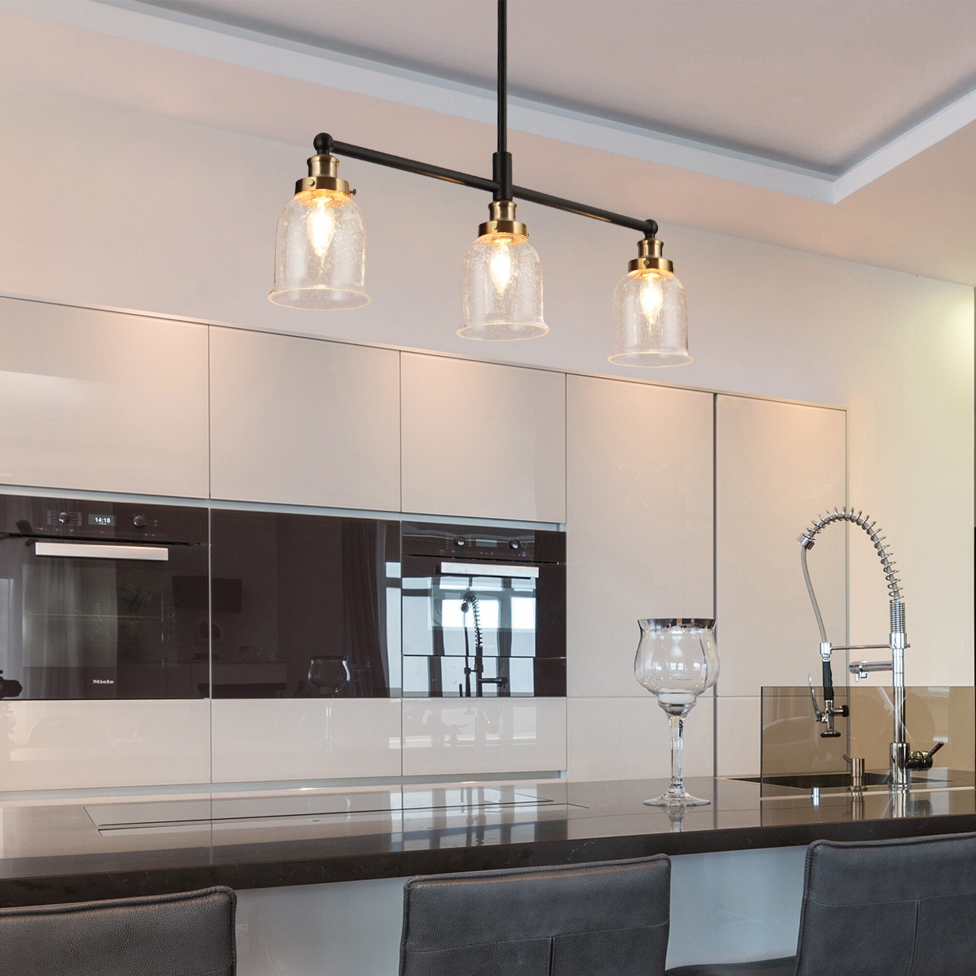 Modern Farmhouse 3-Light Black Gold Chandelier Glass Islands Lights for Dining Room - L27'' x W4.5'' x H9''