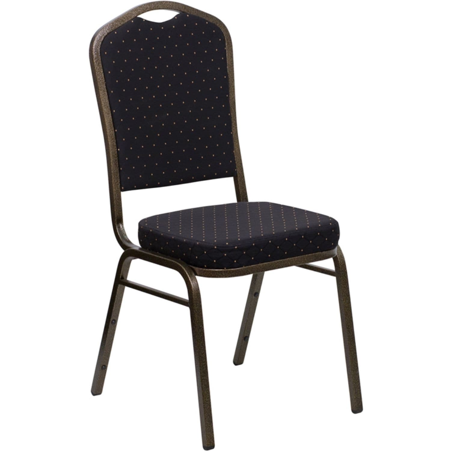 Offex Crown Back Stacking Banquet Chair with Black Patterned Fabric and 2.5'' Thick Seat - Gold Vein Frame - Not Available