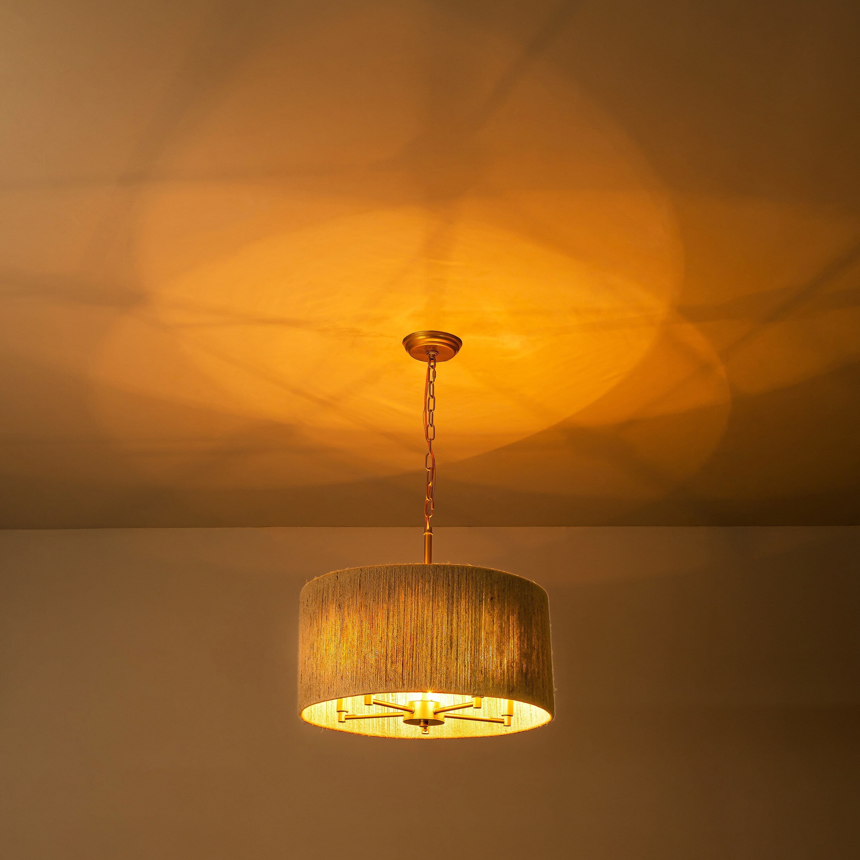 5-Light Gold Finish Jute Rope Chandelier