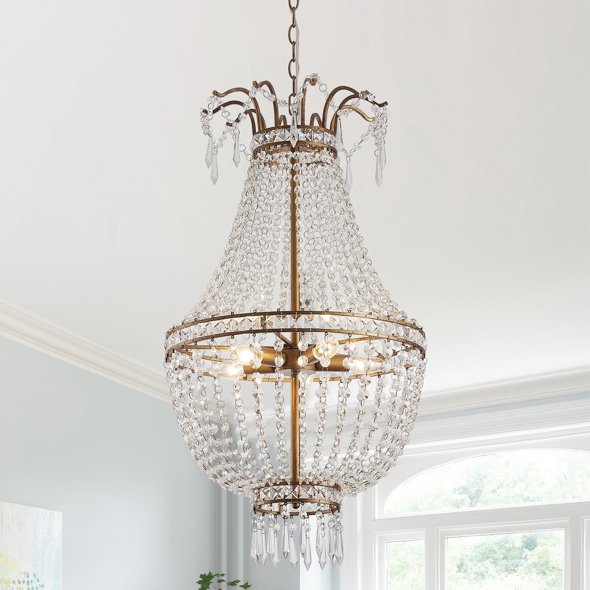Elegant 5-Light Brushed Gold Crystal Beaeded Empire Chandelier - 17.72" W X 32.1" H