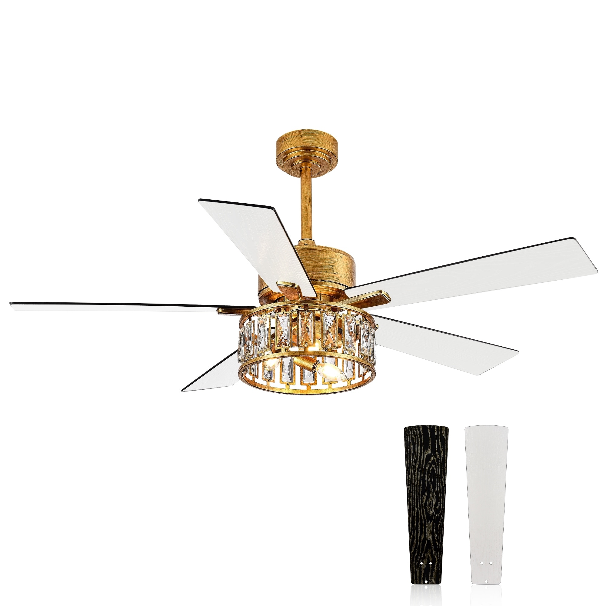 52" 5 Reversible Blade Gold Chandelier Crystal Lighting Ceiling Fan Remote - 52 inch