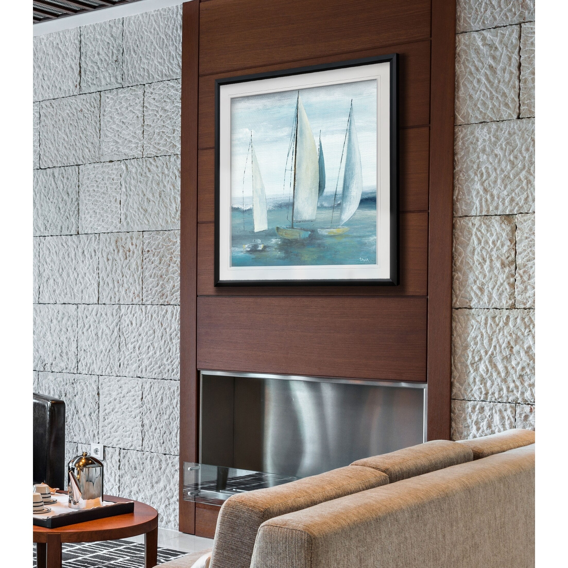 Out to Sea -Custom Framed Print - blue, white, grey, yellow, green, silver, gold