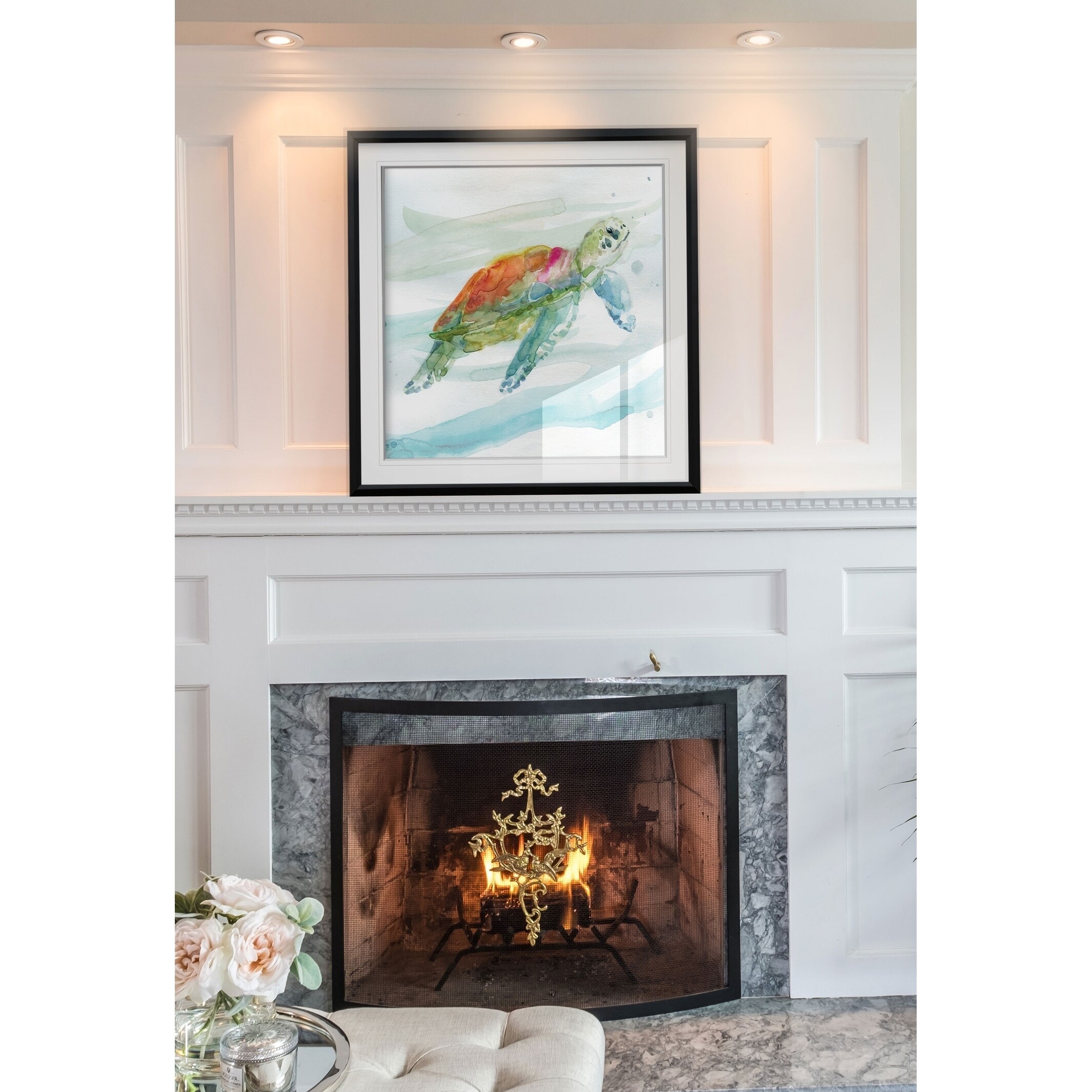 Turtle Tropics I -Custom Framed Print - blue, white, grey, yellow, green, silver, gold
