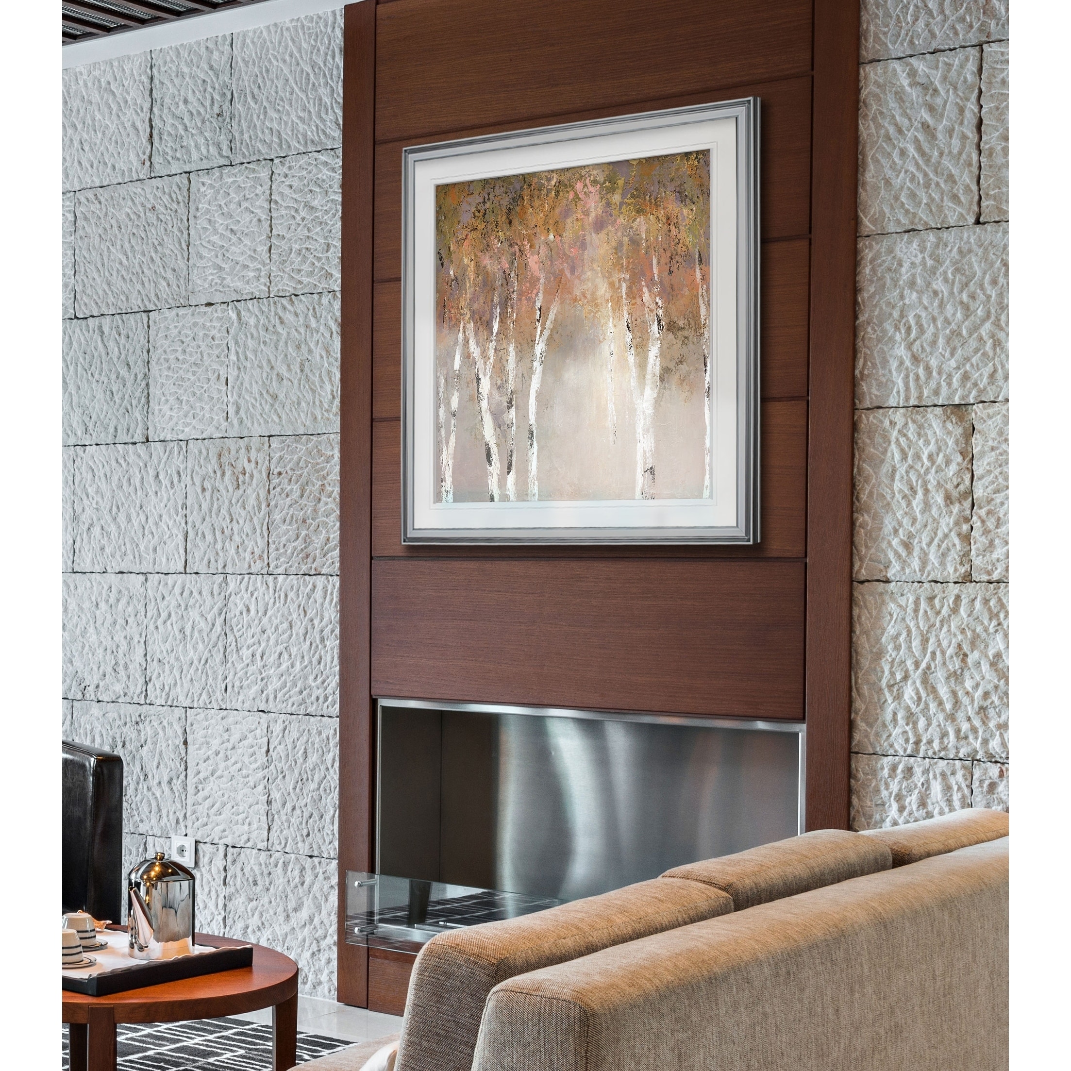 Sunlit Birch II -Custom Framed Print - blue, white, grey, yellow, green, silver, gold