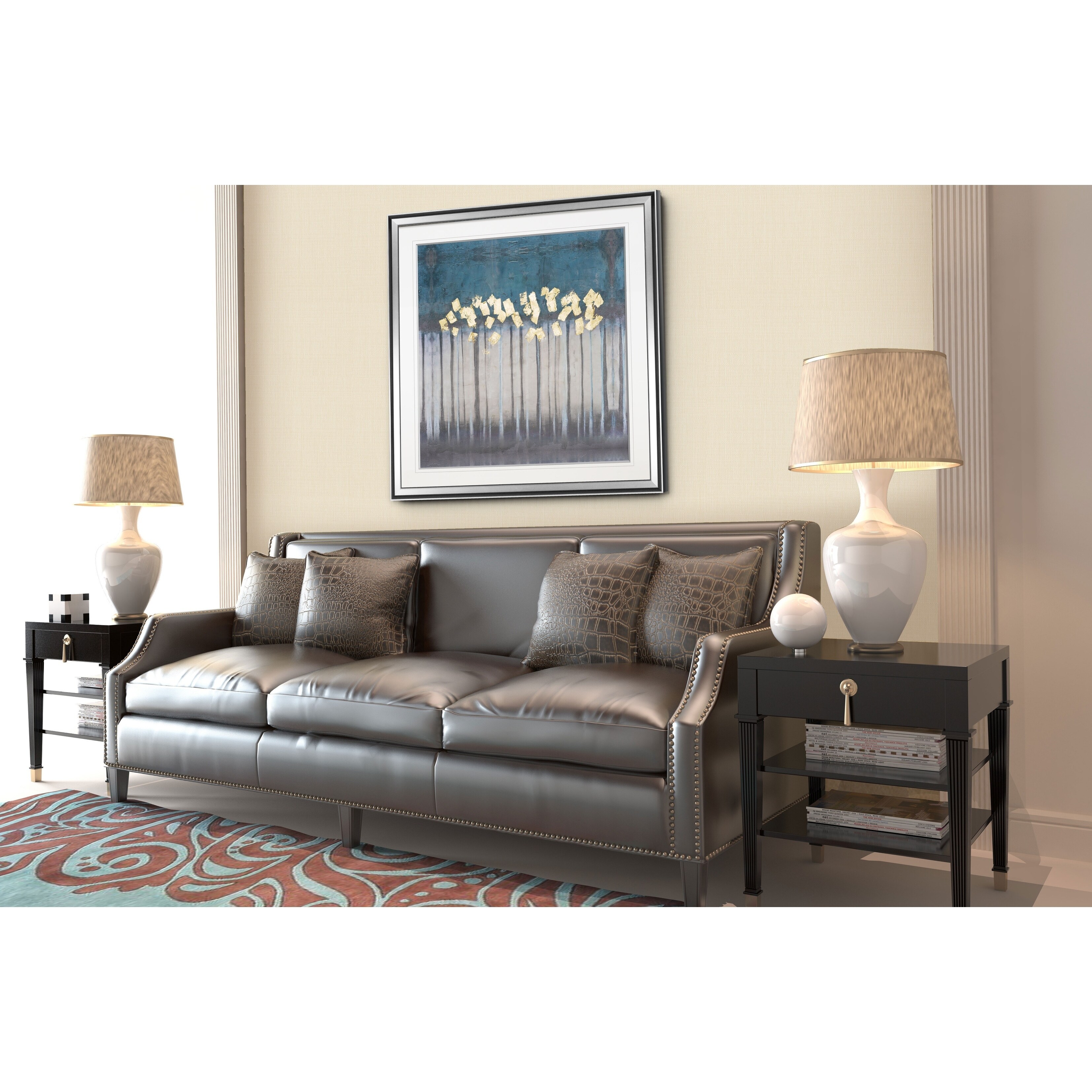 Embellished Treeline II -Custom Framed Print - blue, white, grey, yellow, green, silver, gold