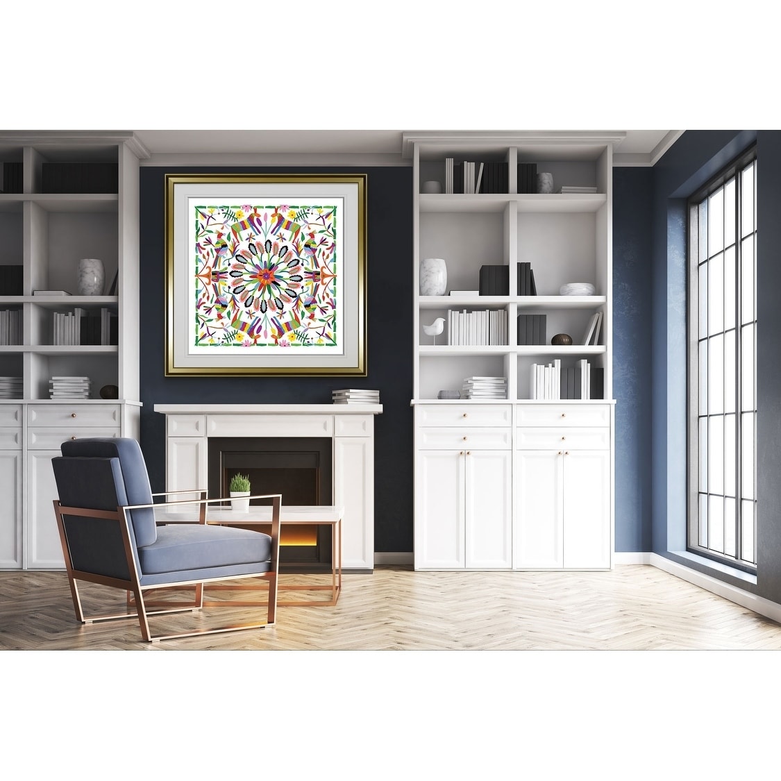 Hummingbird III -Custom Framed Print - blue, white, grey, yellow, green, silver, gold