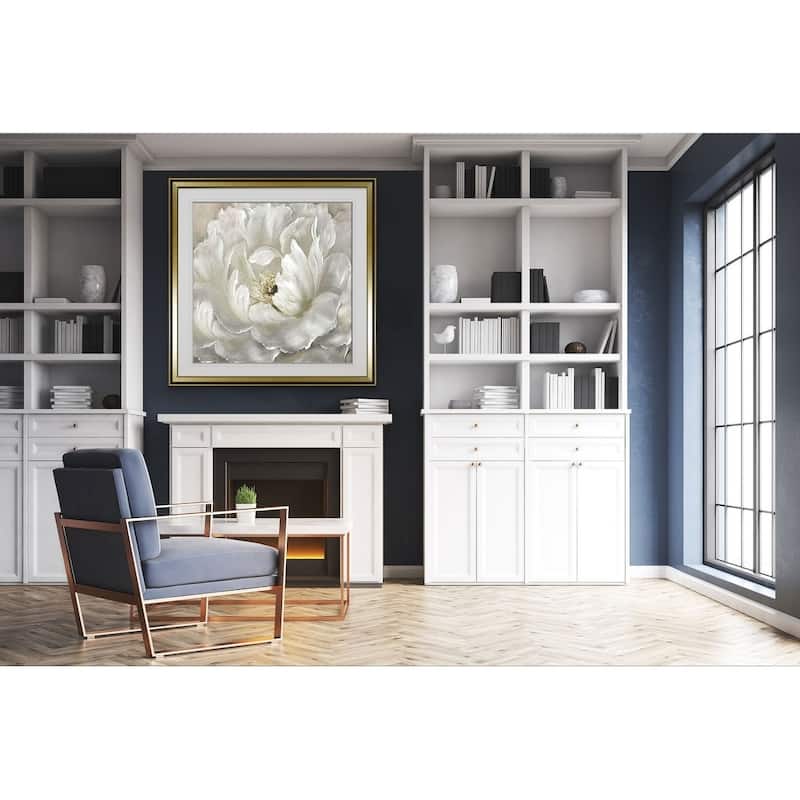 Perfect Peony -Custom Framed Print - blue, white, grey, yellow, green, silver, gold