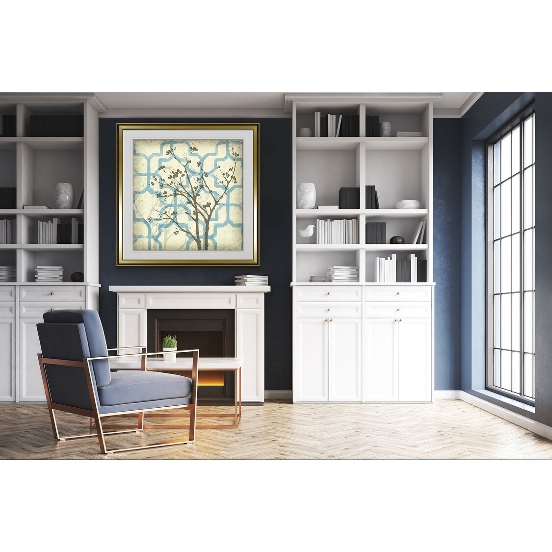 Silhouette & Pattern II -Custom Framed Print - blue, white, grey, yellow, green, silver, gold