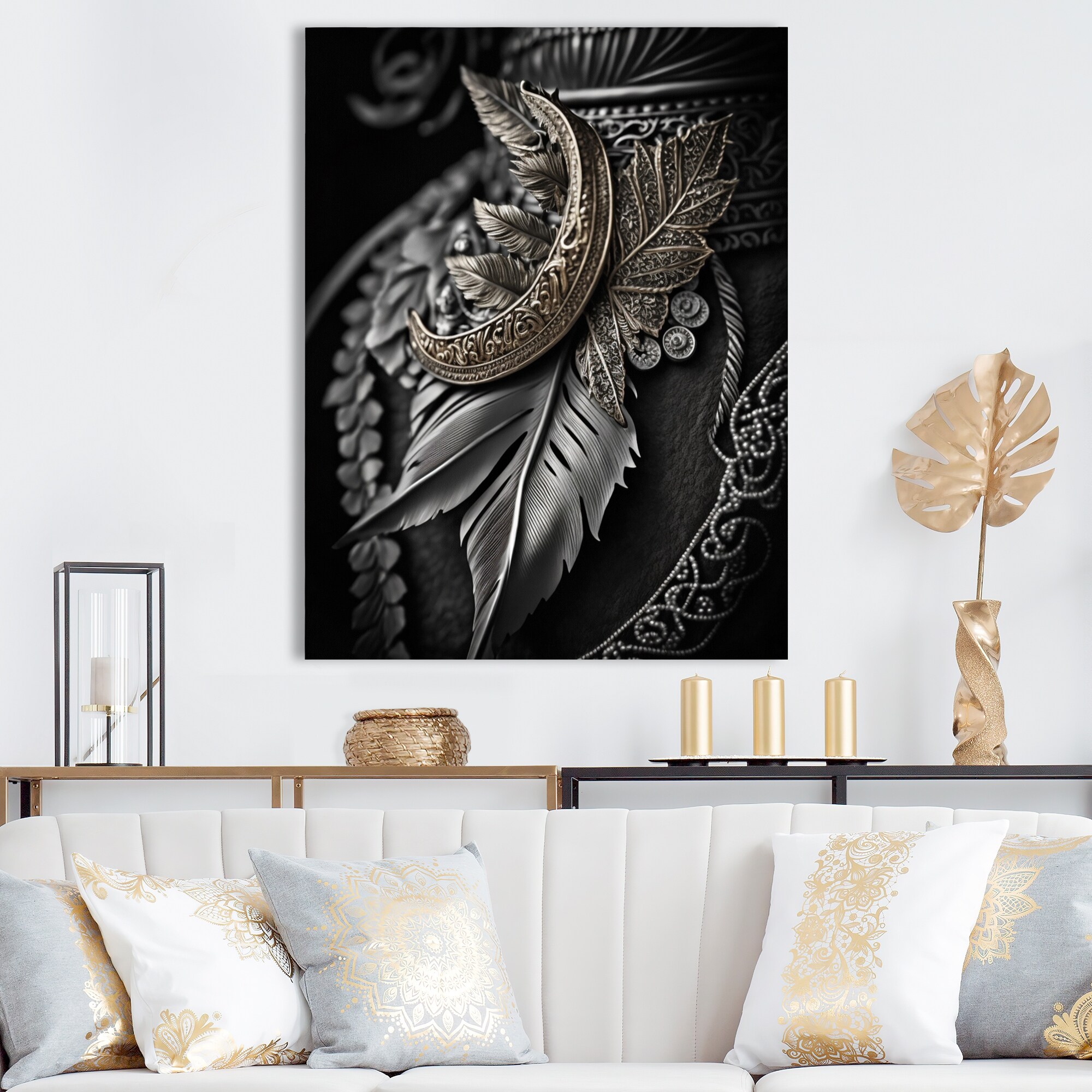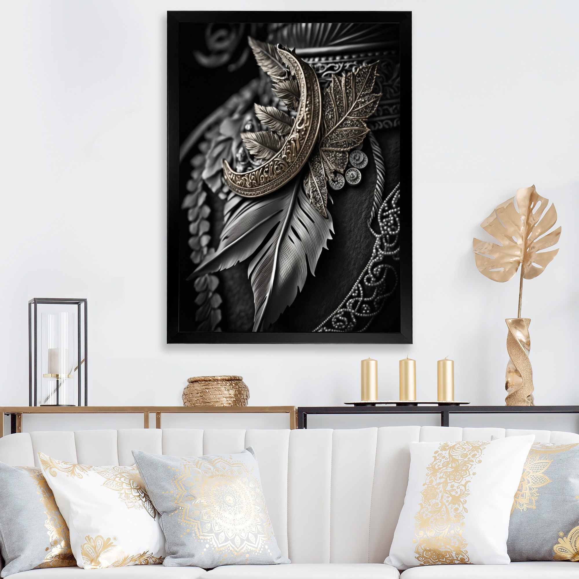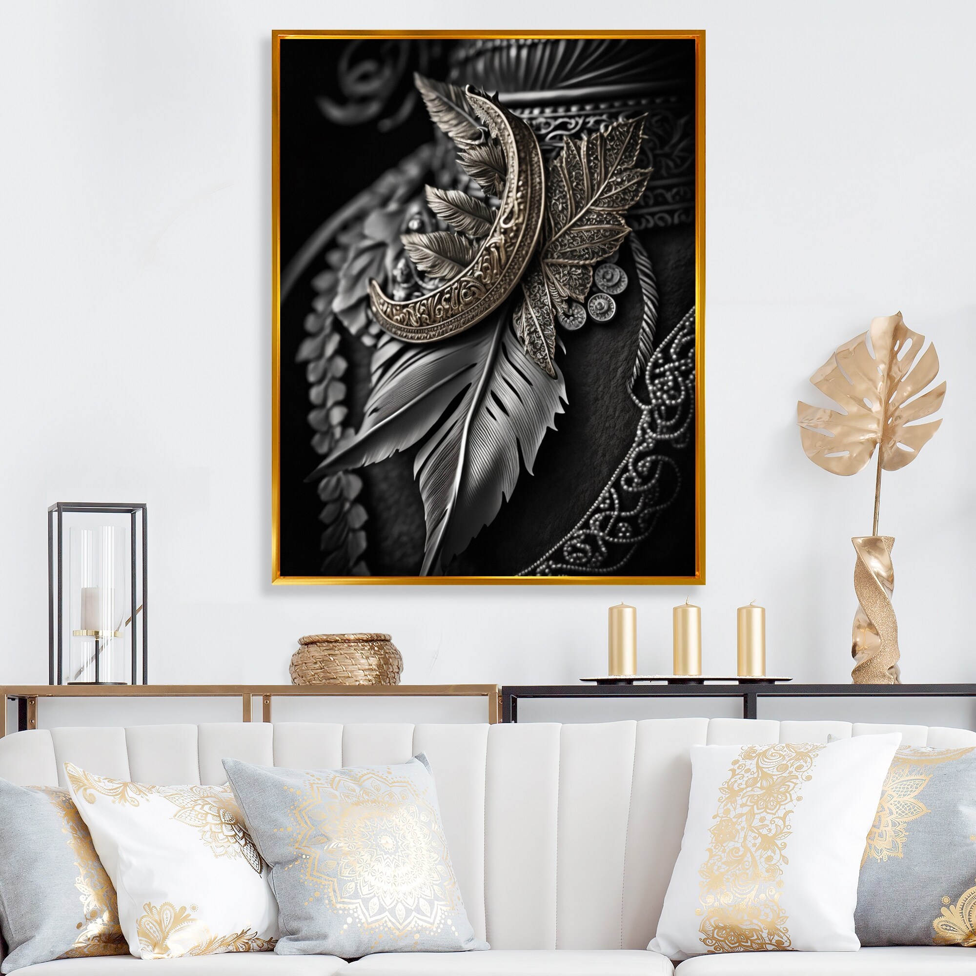 Designart "Silver And Gold Expressions of Freedom I" Boho Feather Framed Wall Art for Living Room