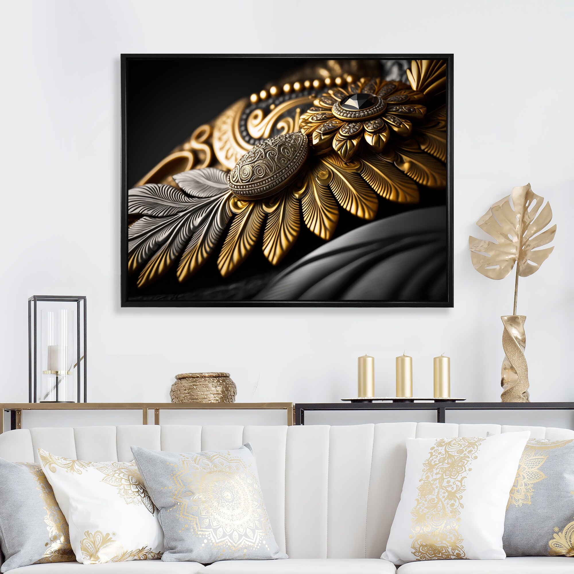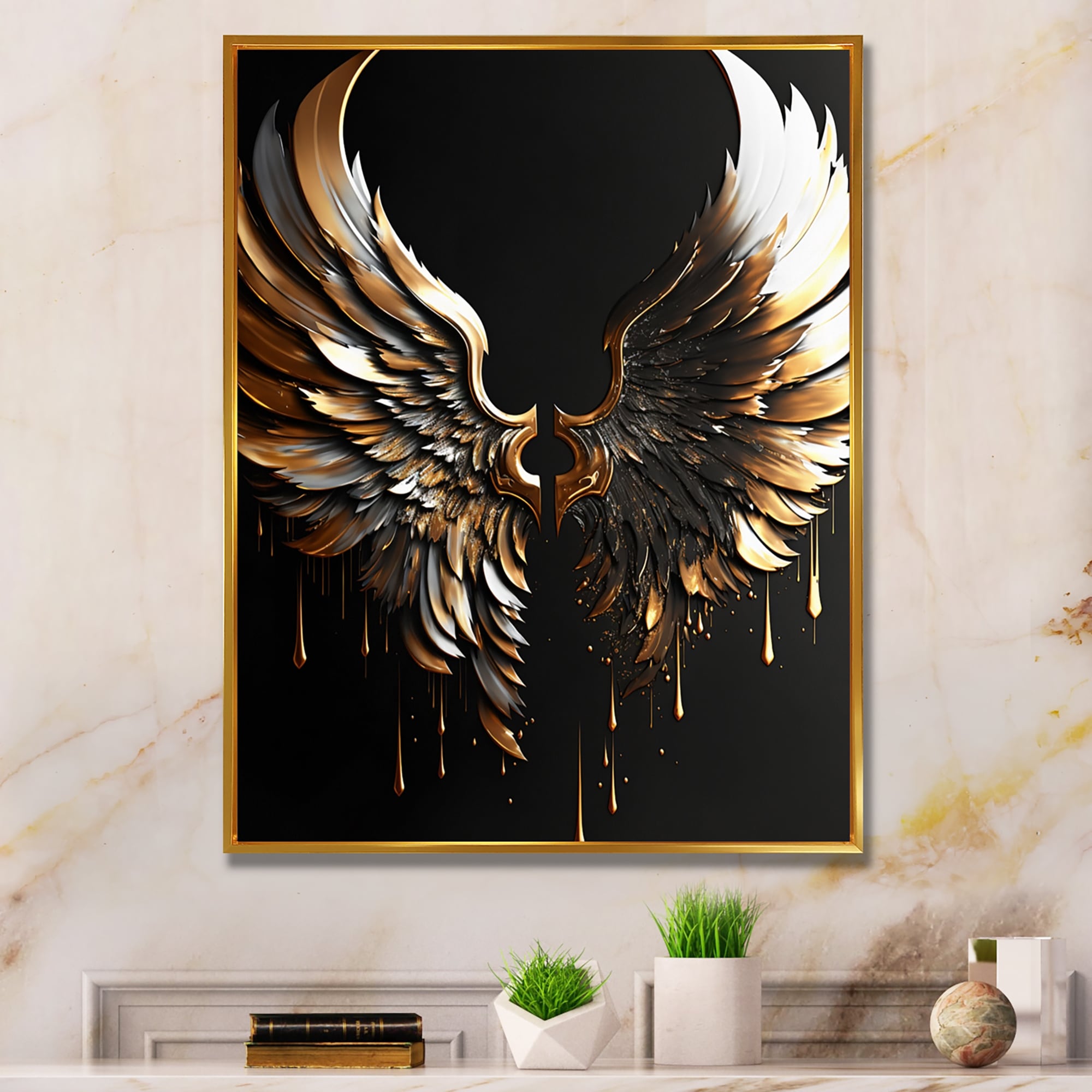 Designart "Black Silver And Gold Angel Wings I" Contemporary Glam Framed Canvas Art Print