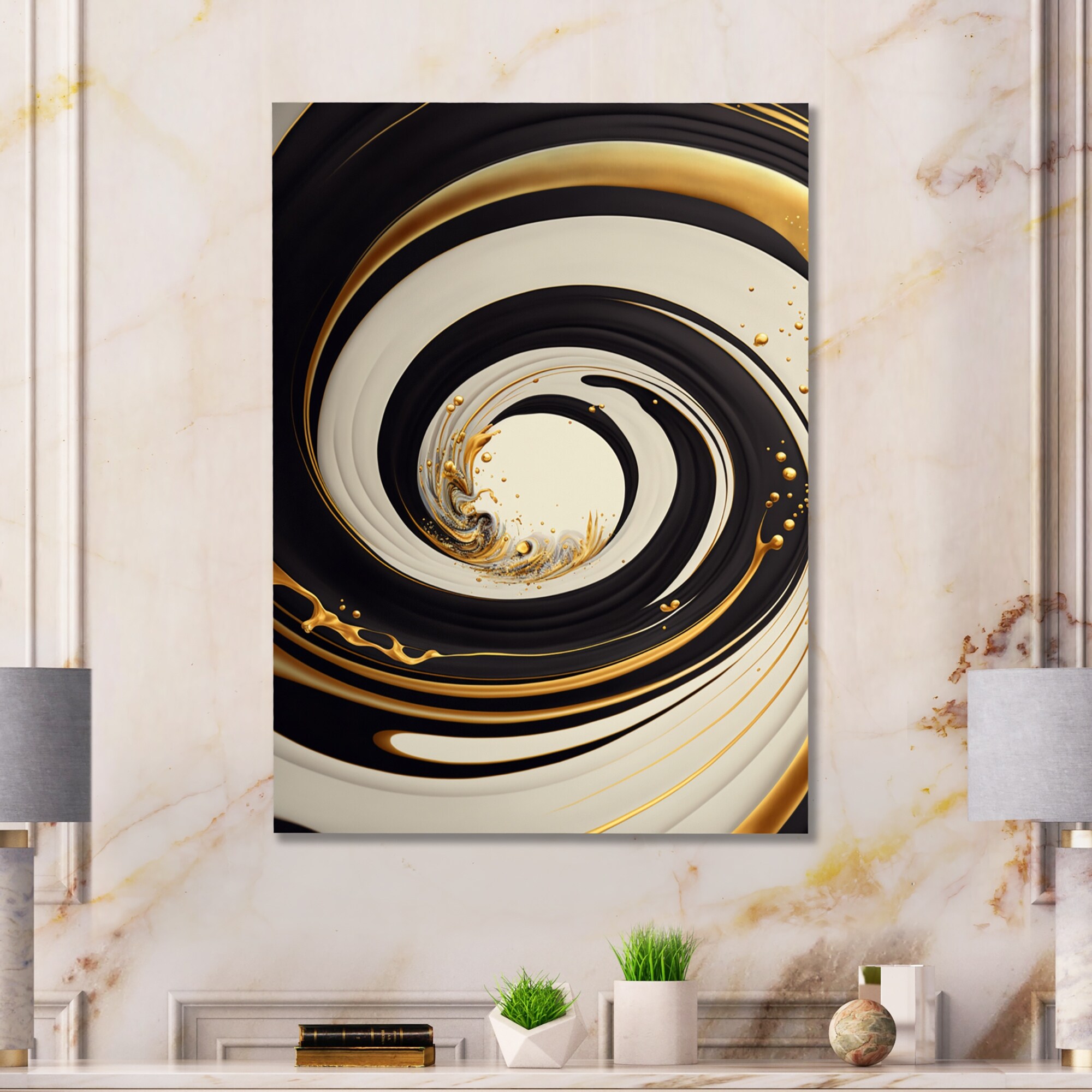 Designart 'Black, Silver And Gold Blending Swirls I' Modern Spiral Metal Wall Art