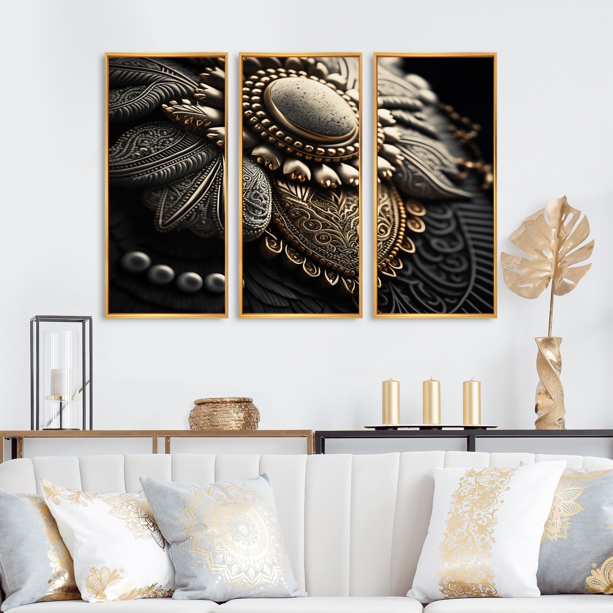 Designart "Vintage Silver And Gold Boho Accessories VII" Fashion Framed Canvas Wall Art Print - 3 Panels