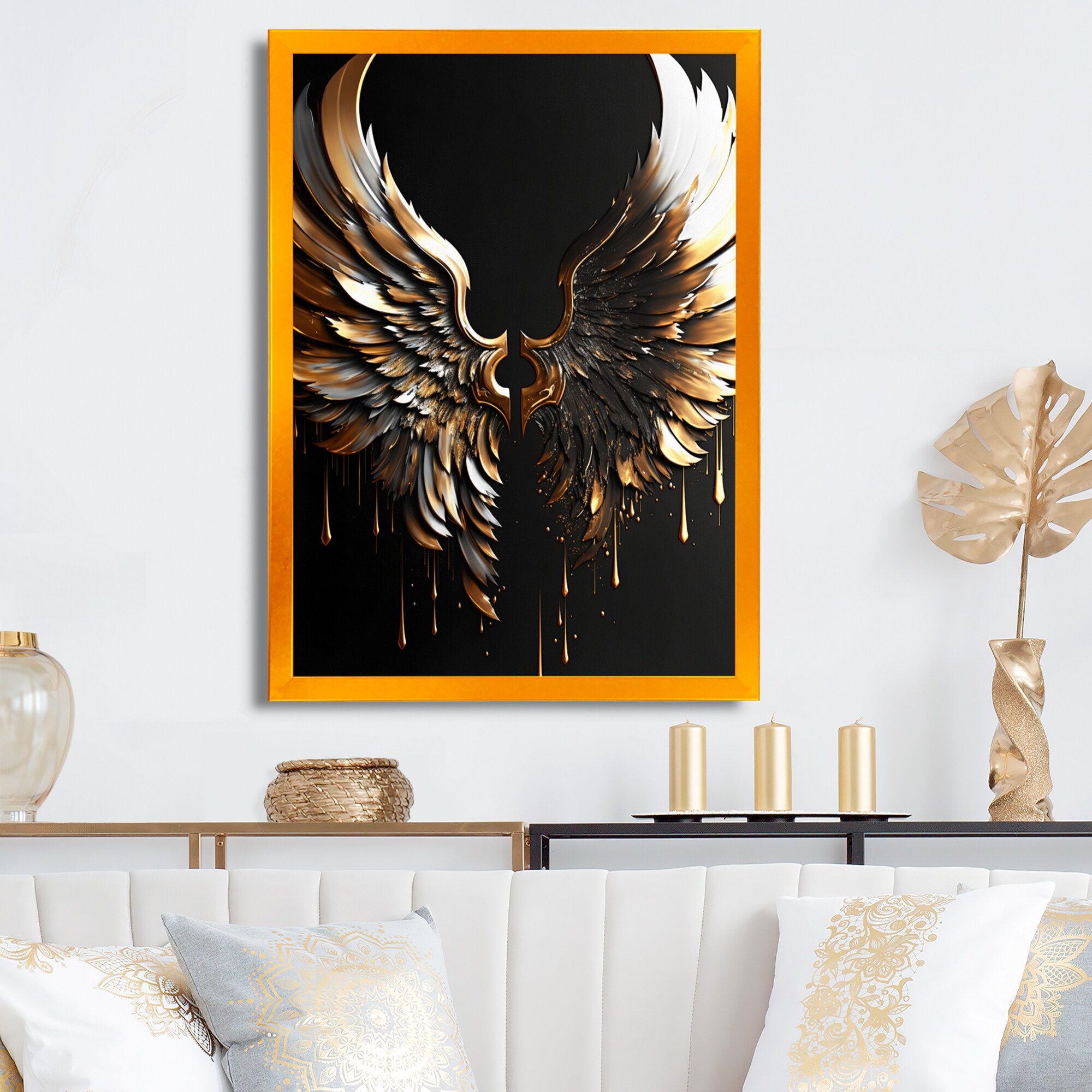 Designart "Black Silver And Gold Angel Wings I" Contemporary Glam Framed Art Print