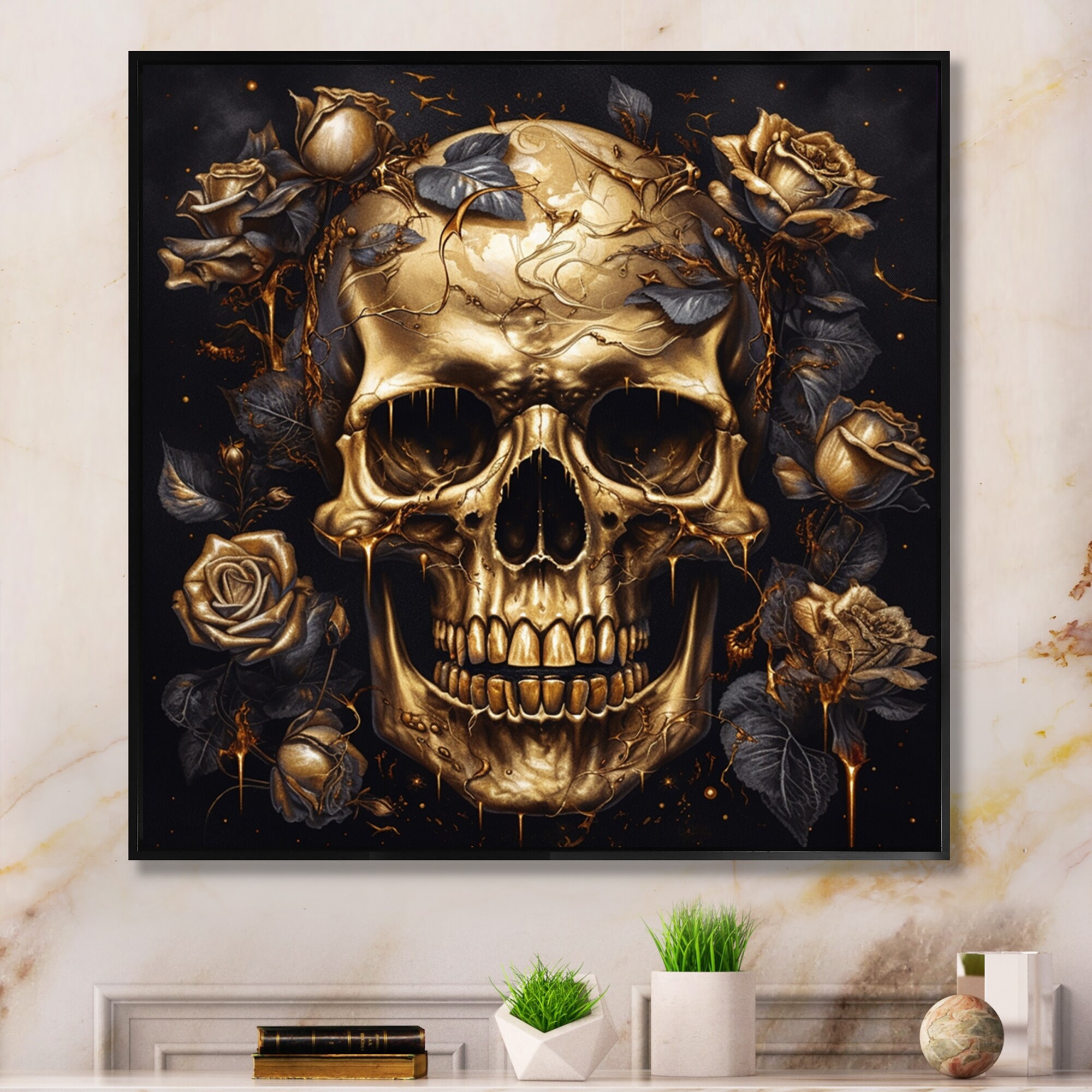 Designart "Gothic Skull Roses" Abstract Floral Framed Canvas Wall Art