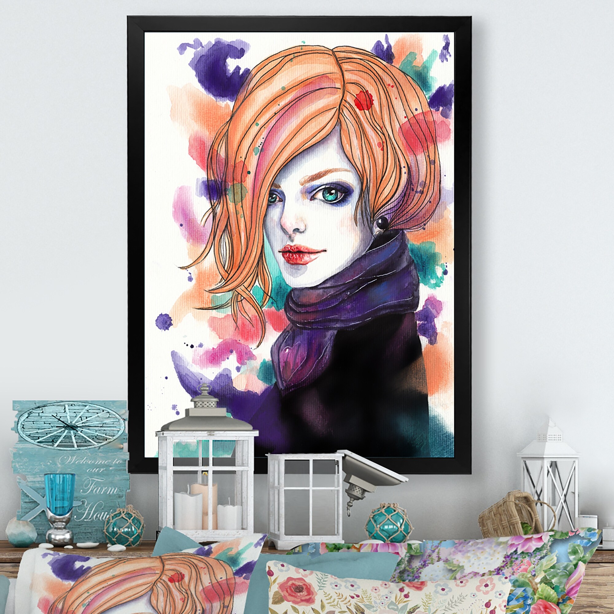 Designart "Gothic Red Hair Girl" Glam Framed artwork