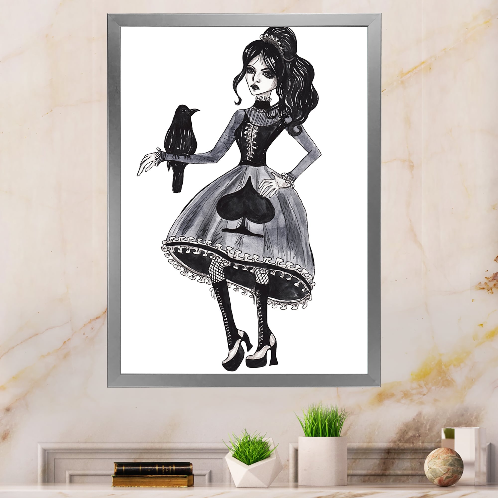 Designart "Gothic Girl With A Crow" Glam Framed Wall Decor