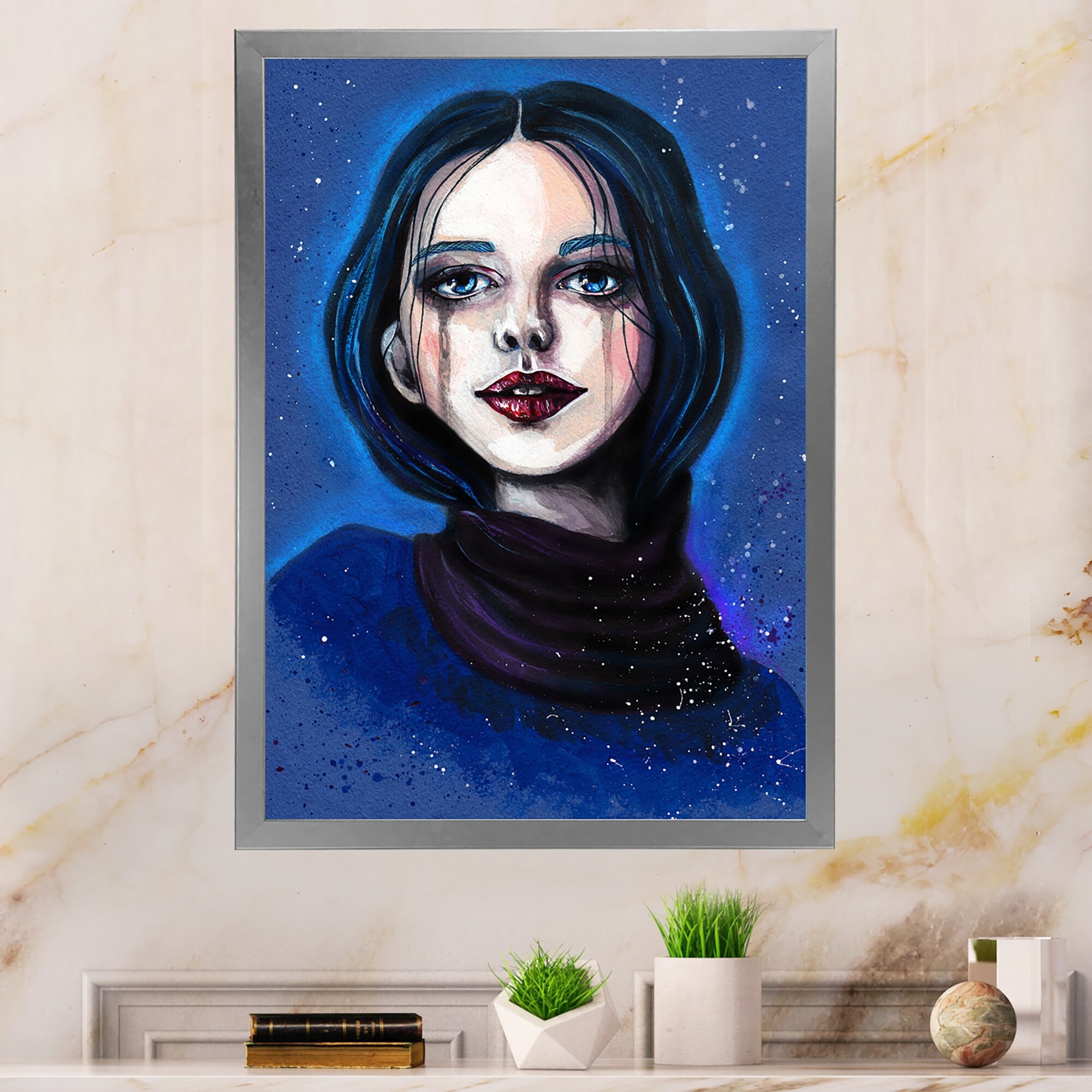 Designart "Gothic Galaxy Girl Portrait" Glam Framed Wall Art