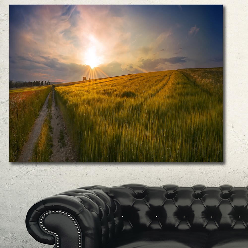 Designart "Sunset in Field of Grain Panorama" Large Landscape Canvas Art Print - Multi-color