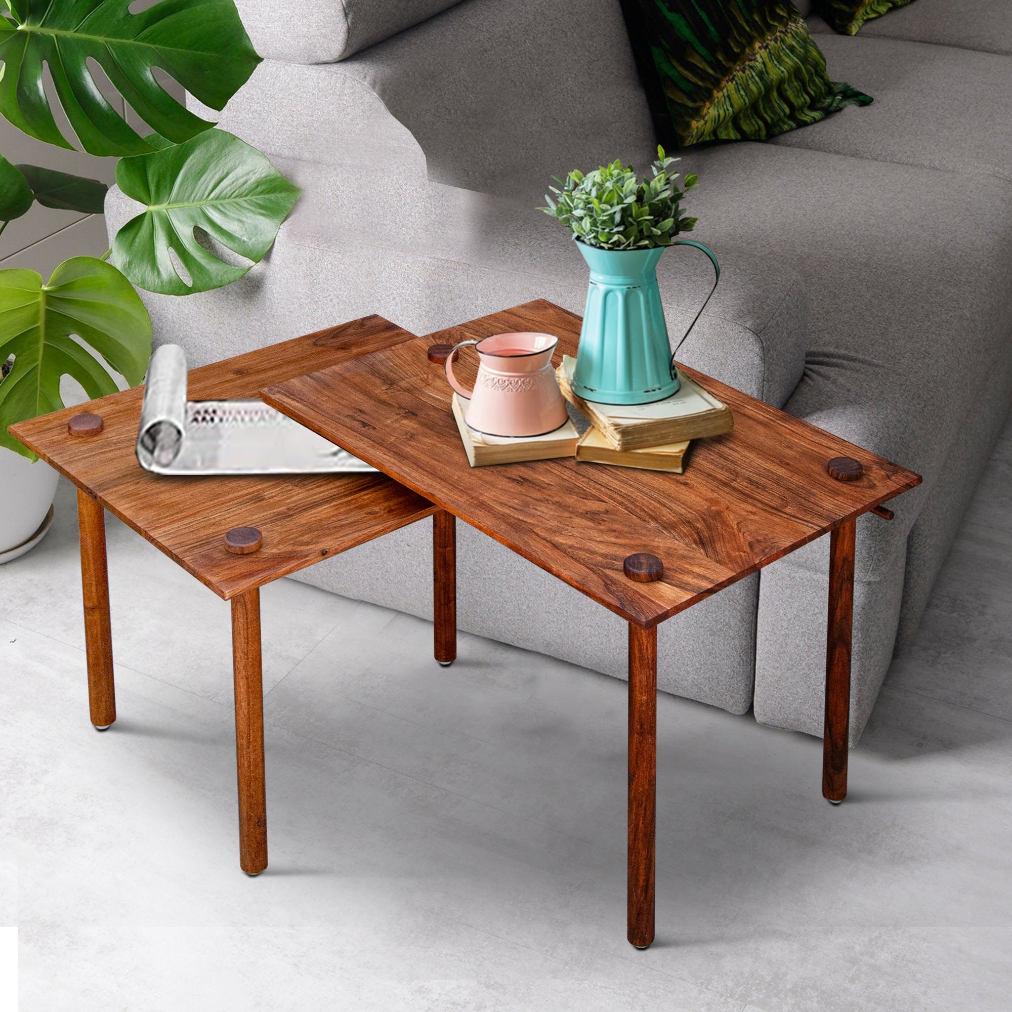 18 Inch Rectangular End Table with Pull Out Extension and Grain Details, Brown