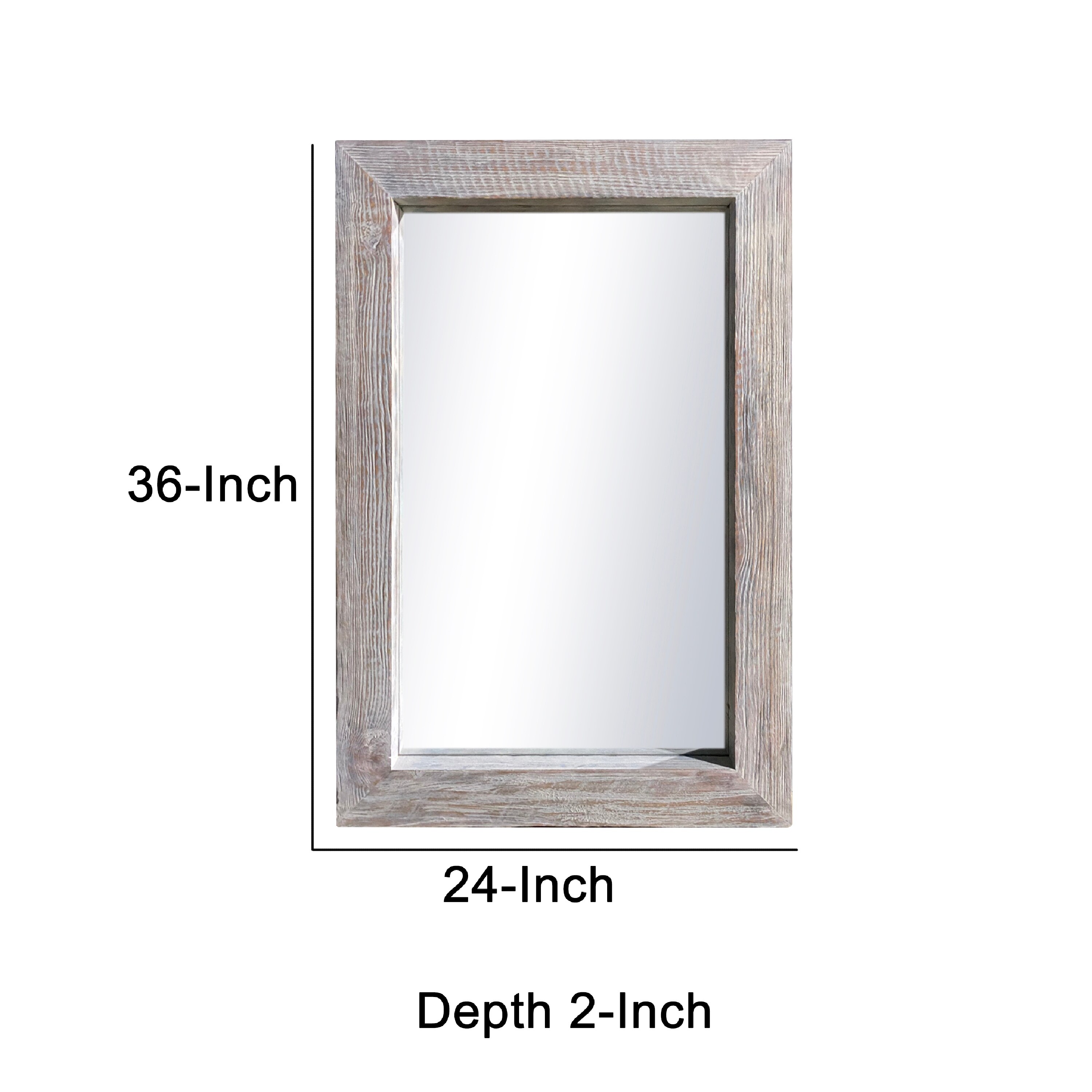 Rectangular Wooden Frame Wall Mirror, Grain Details, Antique White