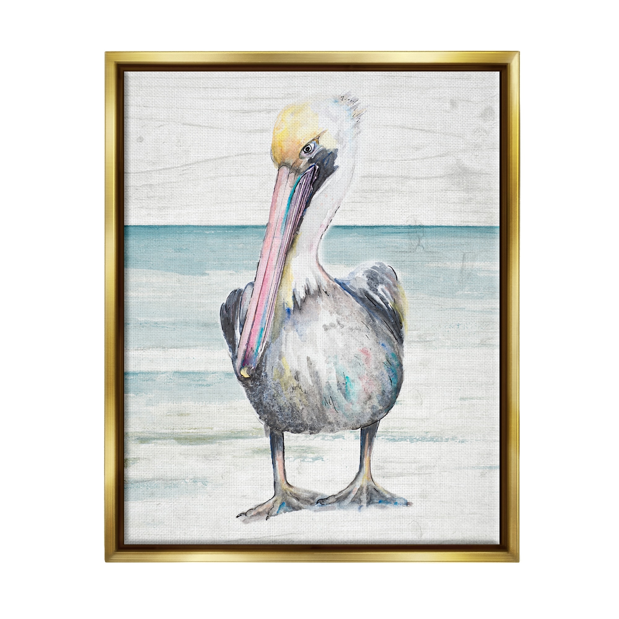 Stupell Industries Pelican Bird Standing Beach Sand Grain Pattern Floater Frame, Design by Patricia Pinto