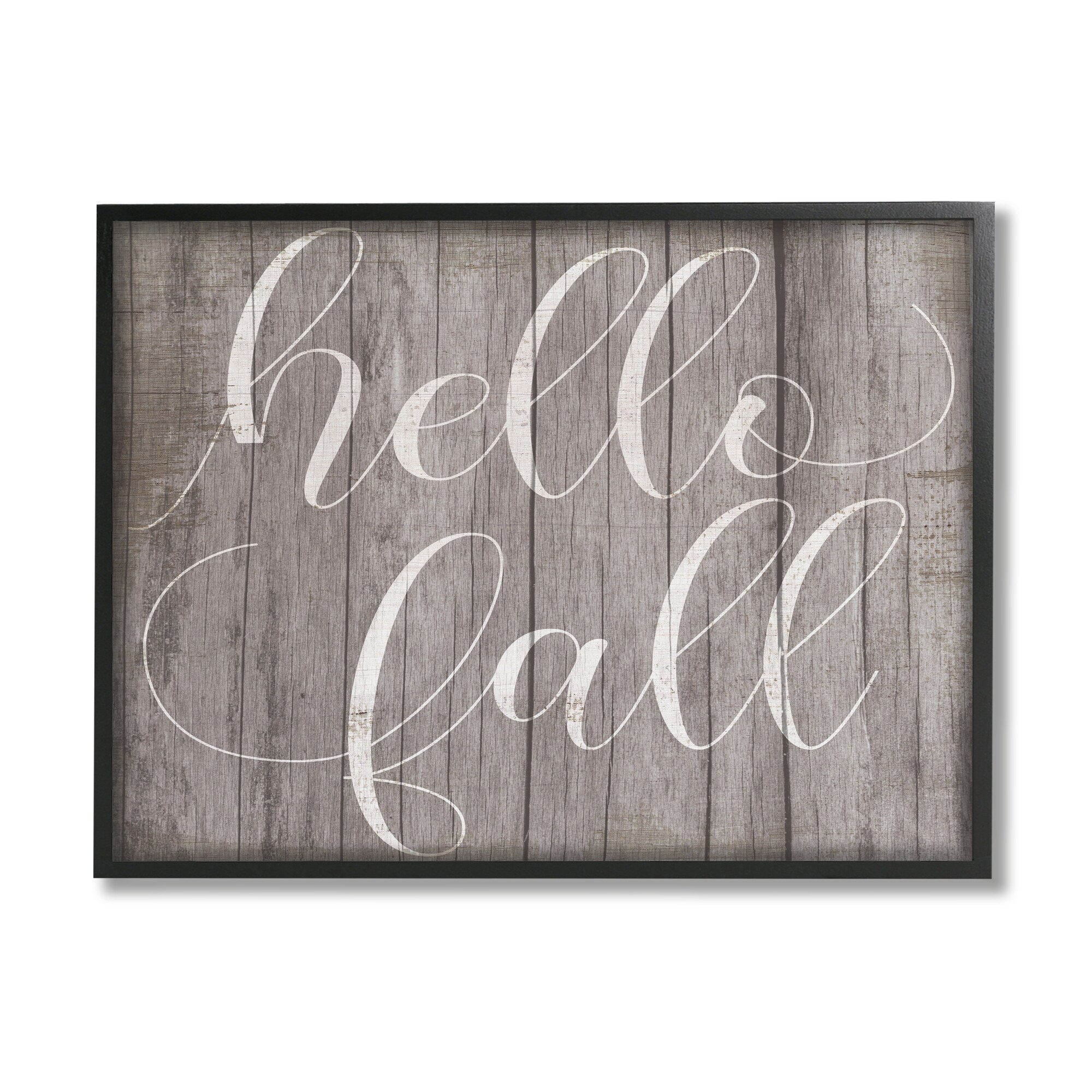Stupell Hello Fall Phrase Rustic Grain Pattern Minimal Typography Framed Wall Art - Brown