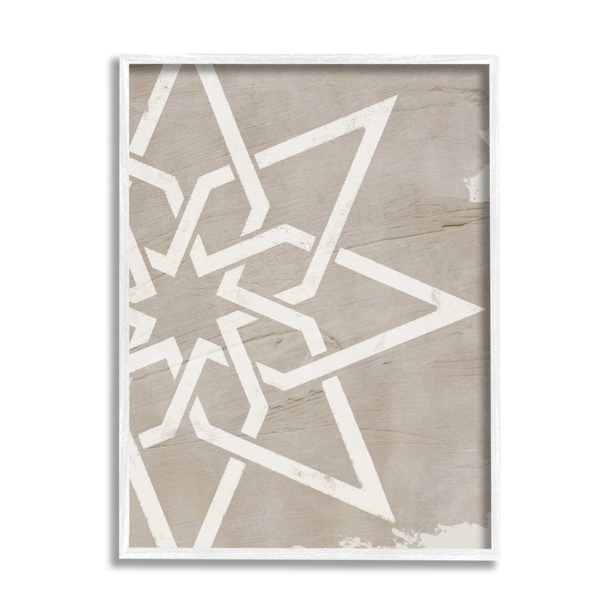Stupell Geometric Eight Point Star Distressed Grain Detail Framed Giclee Texturized Art by Daphne Polselli