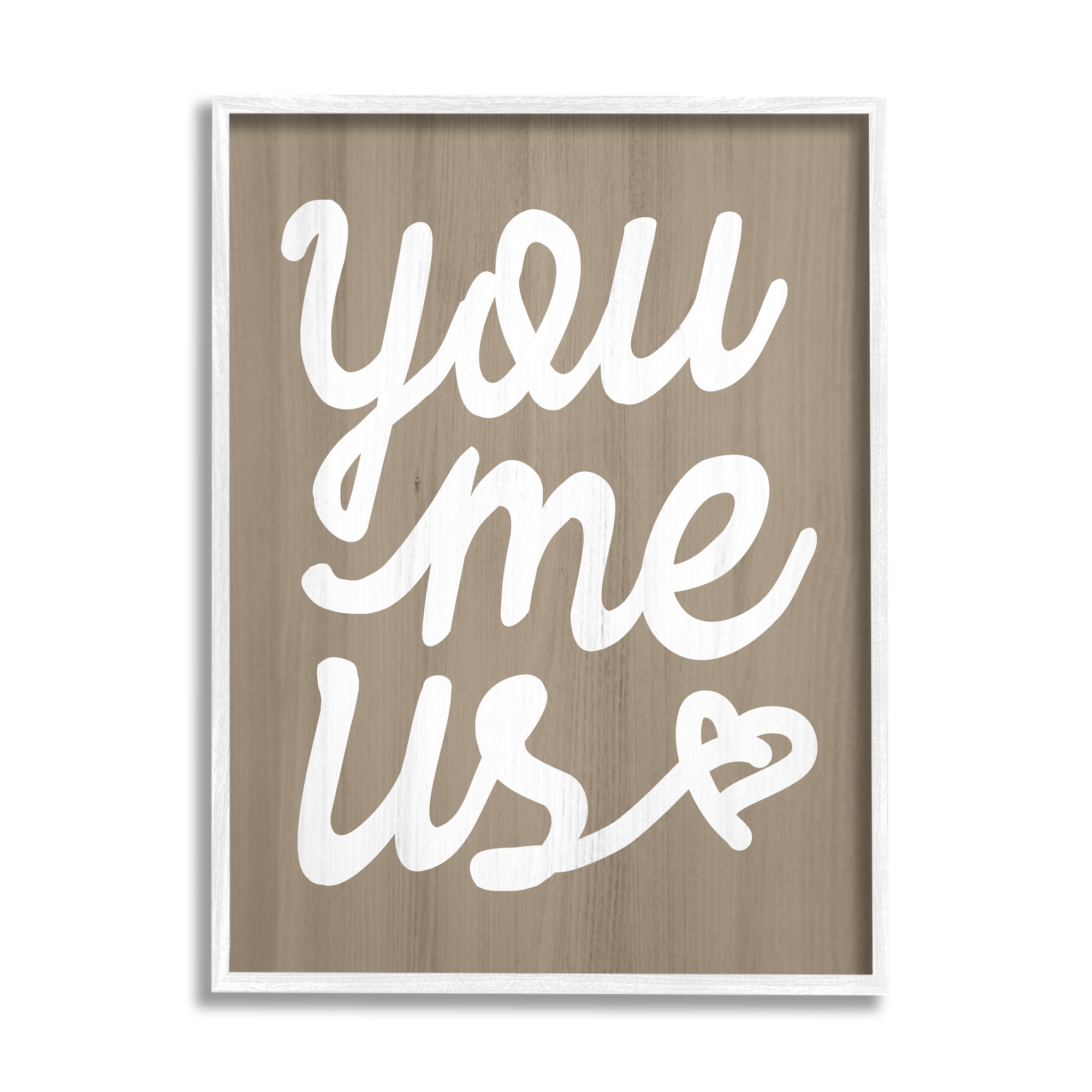 Stupell You Me Us Romantic Love Grain Pattern Cursive Framed Wall Art, Design by Daphne Polselli