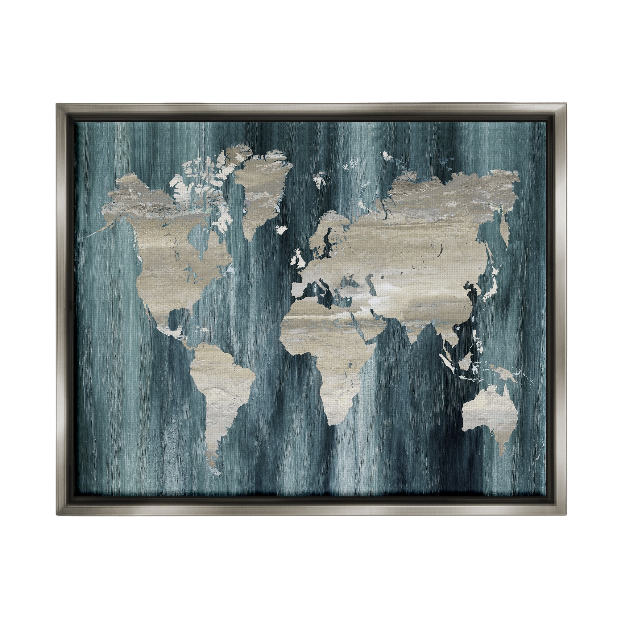 Stupell Rustic Grain Patterned World Map Country Shapes Floater Frame, Design by Nan