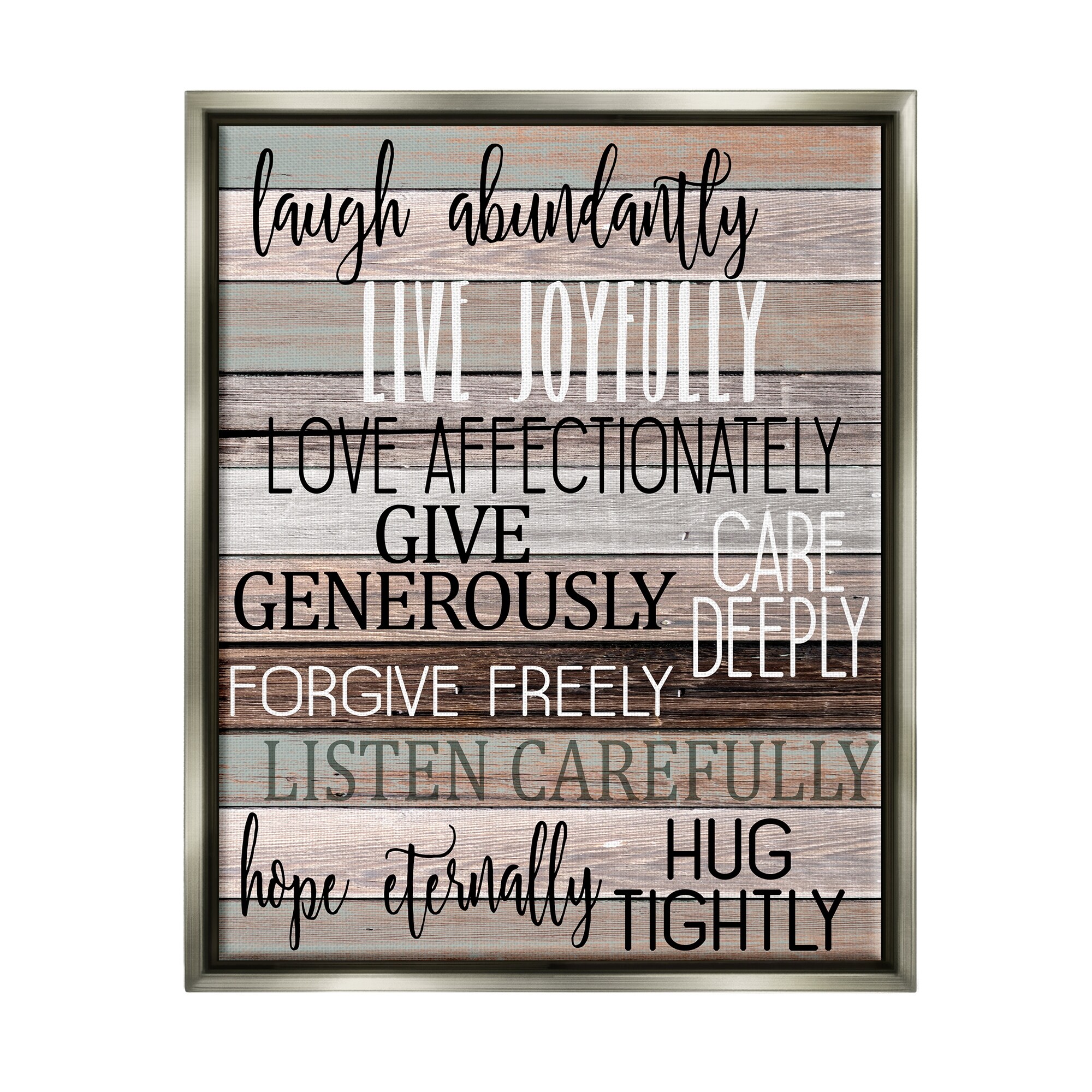 Stupell Live Joyfully Phrases on Wood Grain Brown Tan Teal Floater Frame - Multi-Color