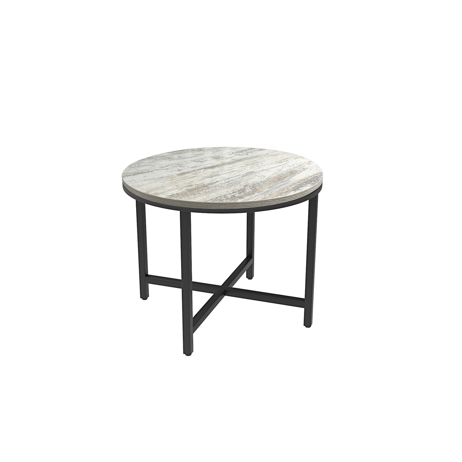 Frana Wood-Grain Round Side Table with Black X-Shaped Metal Frame