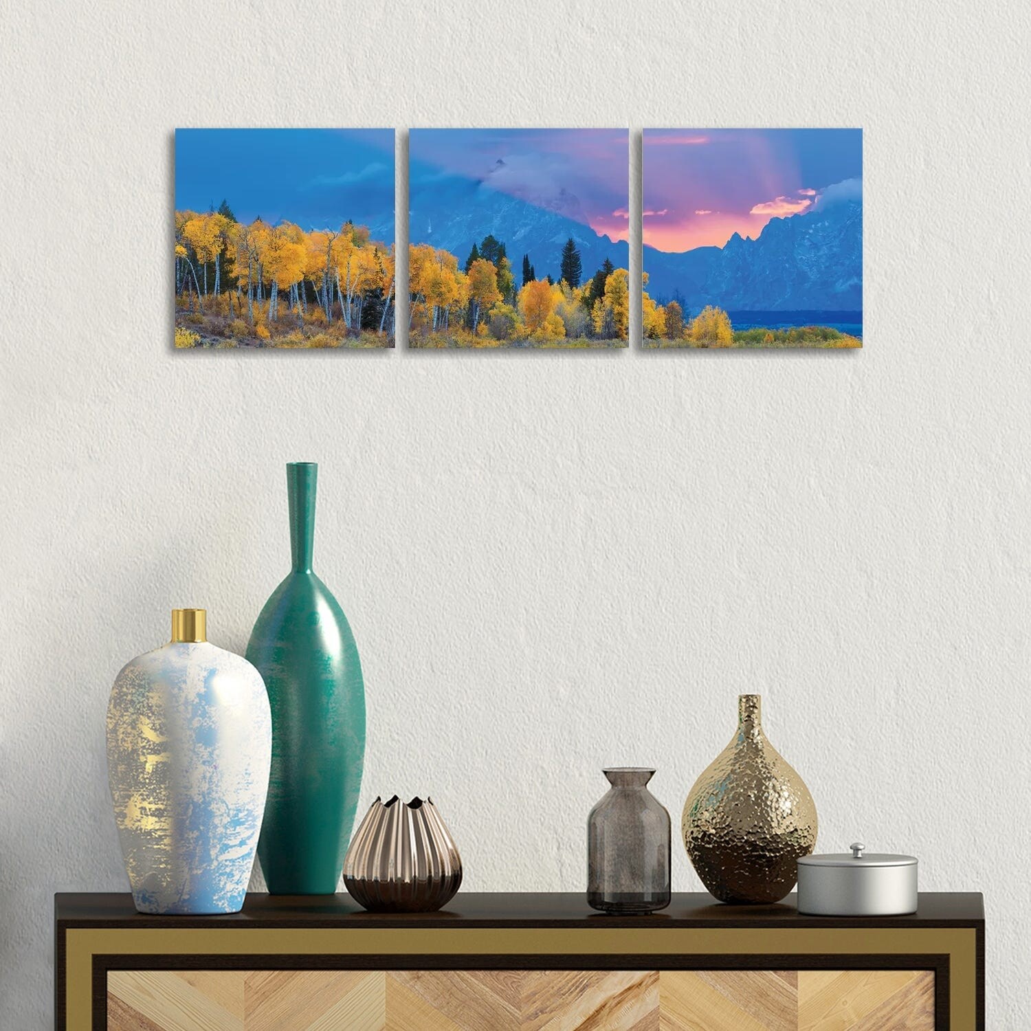 iCanvas "Autumn Landscape At Sunset, Grand Teton National Park, Wyoming, USA" by Panoramic Images 3-Piece Canvas Wall Art Set
