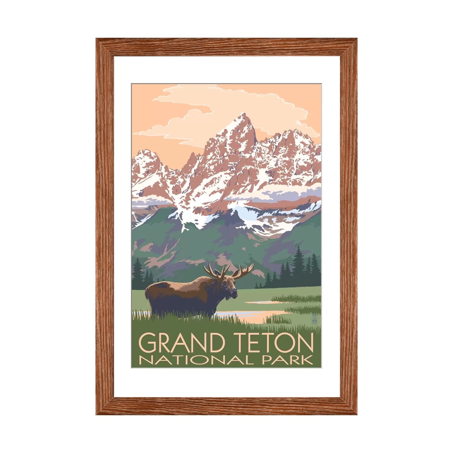iCanvas "Grand Teton National Park (Moose And Teton Range)" by Lantern Press Framed Canvas Print