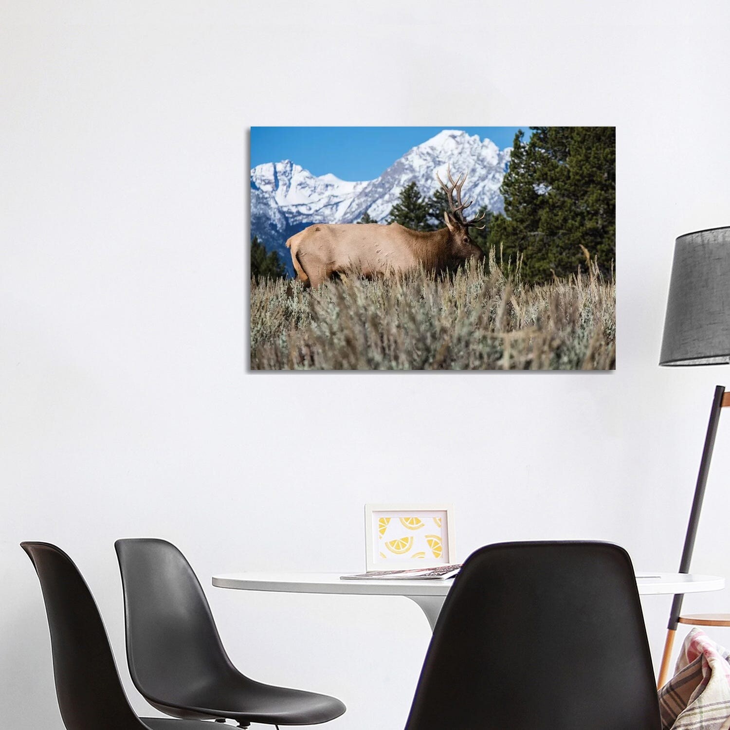 iCanvas "Elk In A Field With Teton Range in the Background, Grand Teton National Park" by Panoramic Images Canvas Print