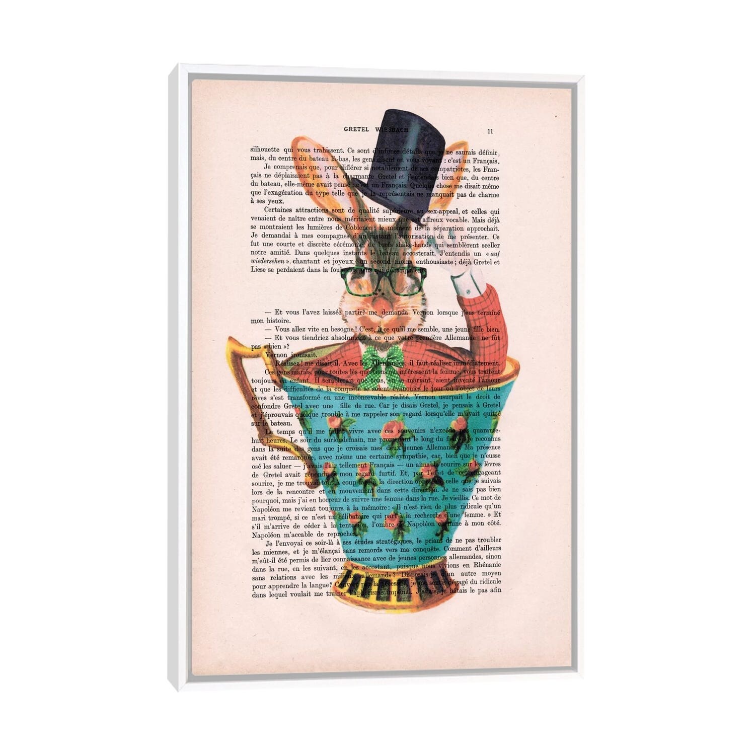 iCanvas "R-bbit With Hat in A Cup" by Coco de Paris Framed Canvas Print