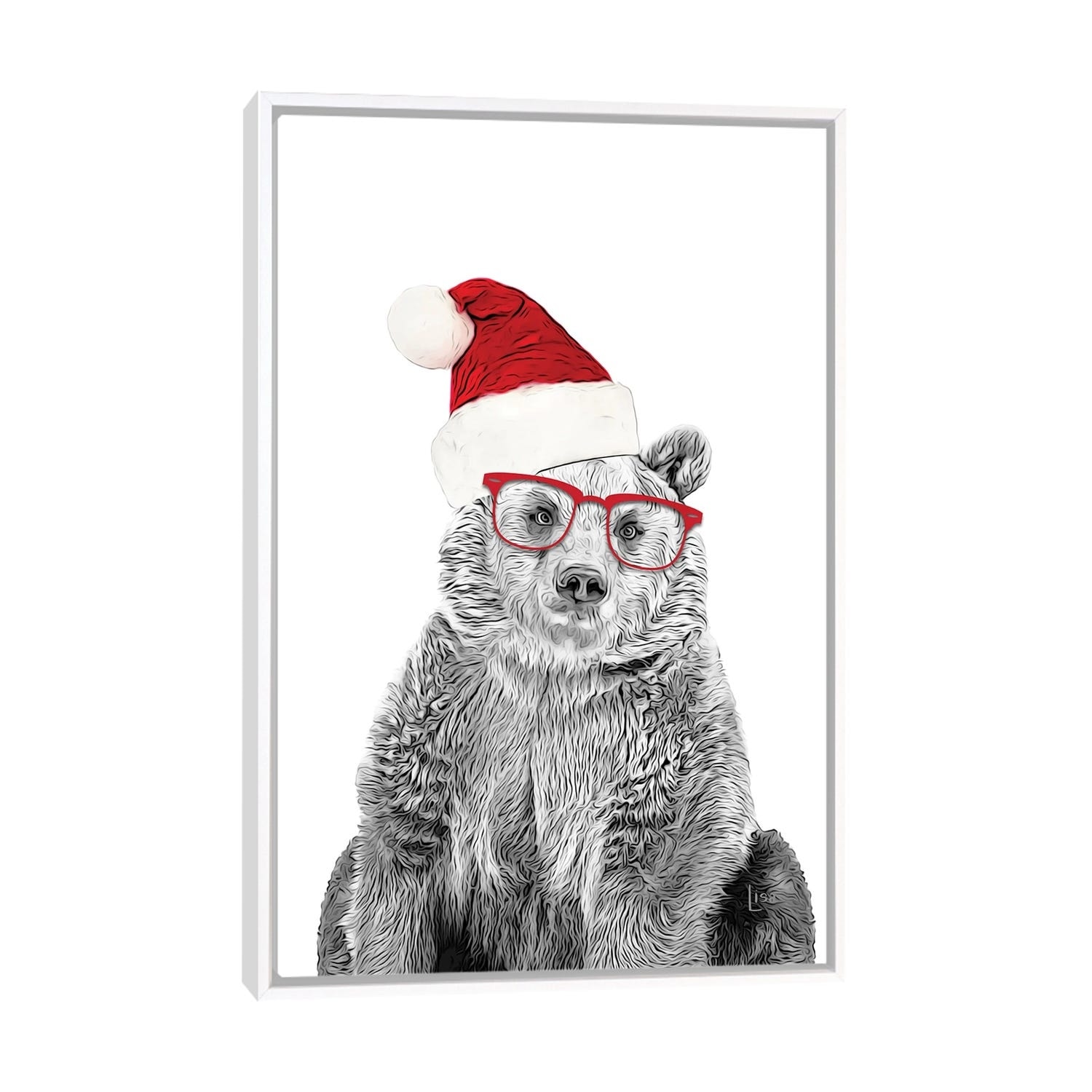 iCanvas "Christmas Bear With Glasses And Hat" by Printable Lisa's Pets Framed