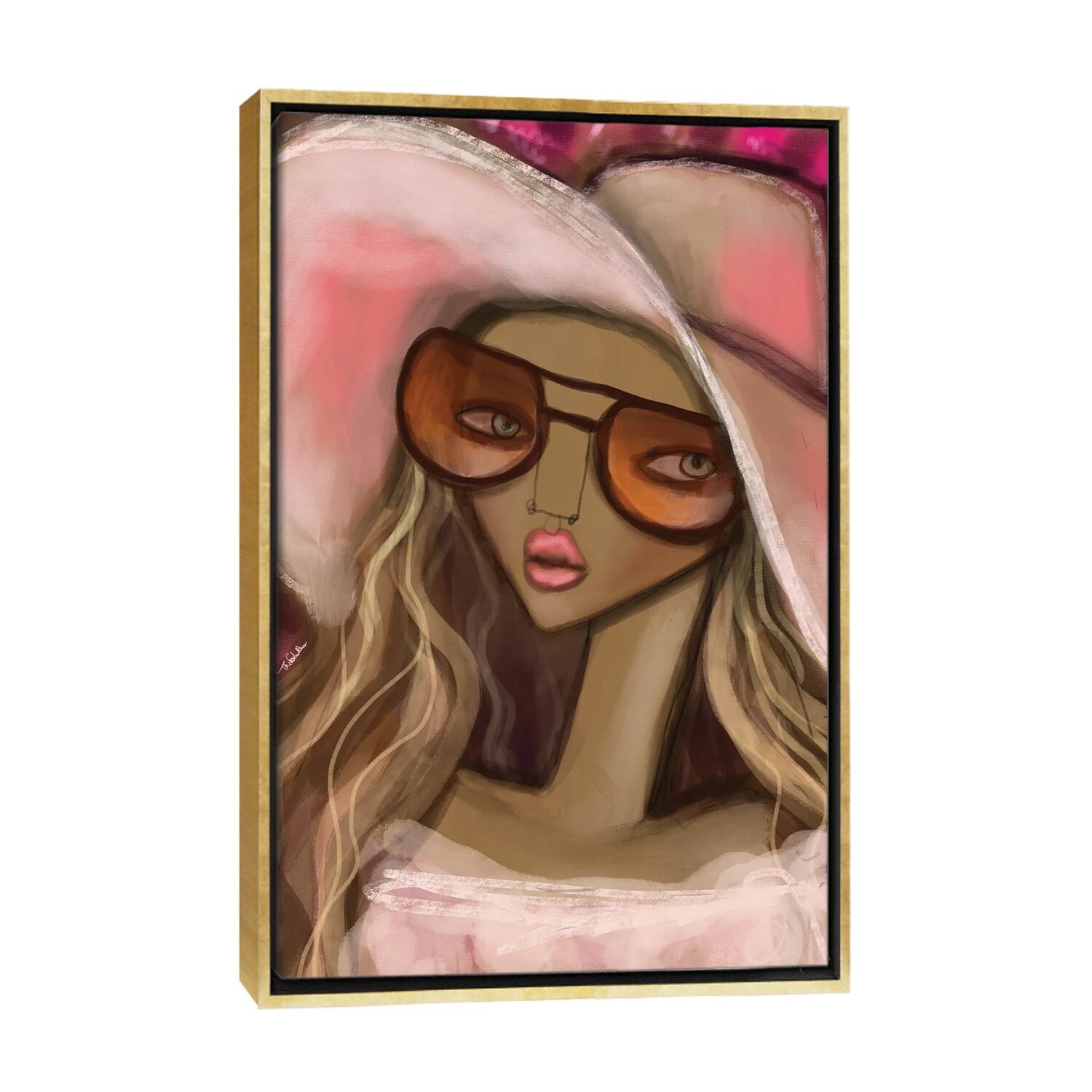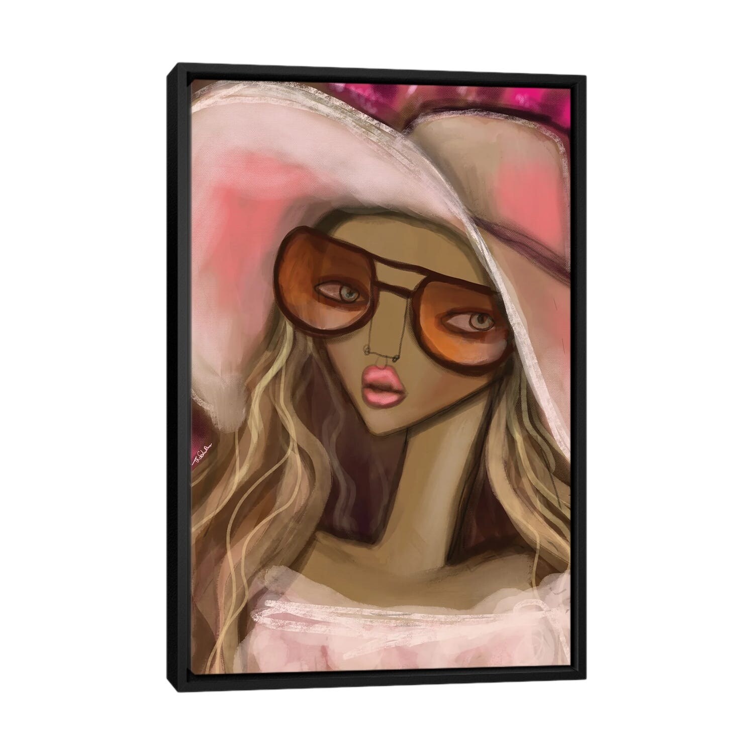 iCanvas "Girl In Pink Hat" by Thefashiondrawer Framed