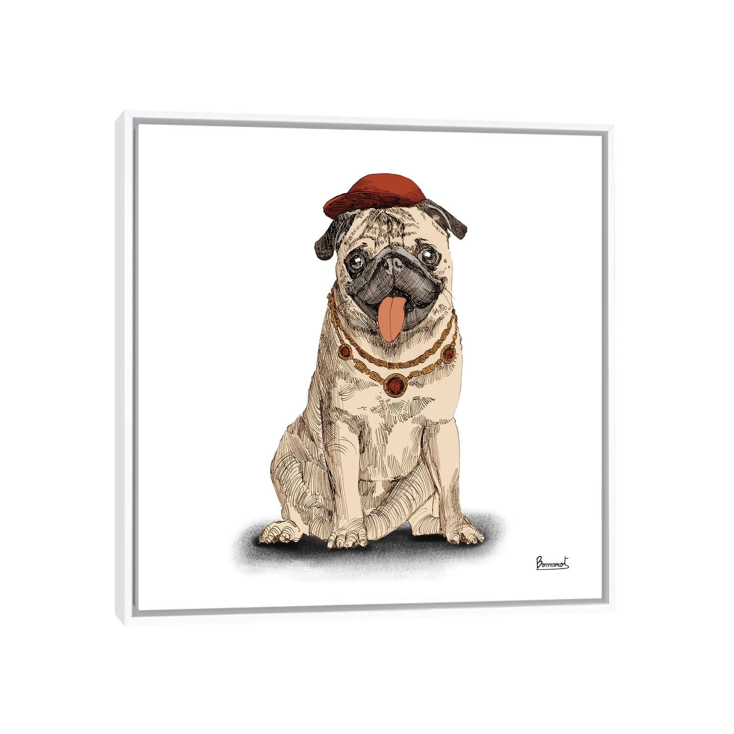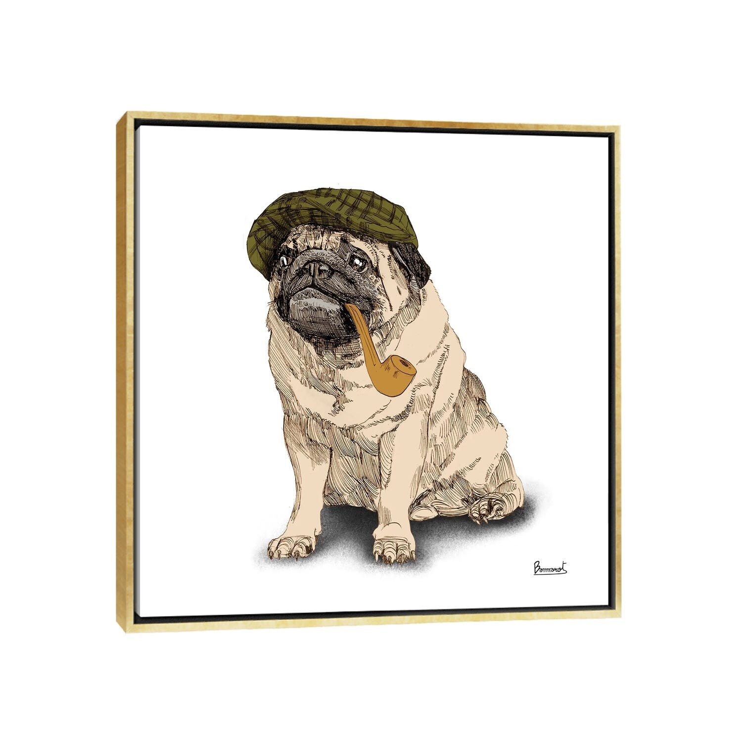 iCanvas "Pugs in hats I" by Bannarot Framed Canvas Print