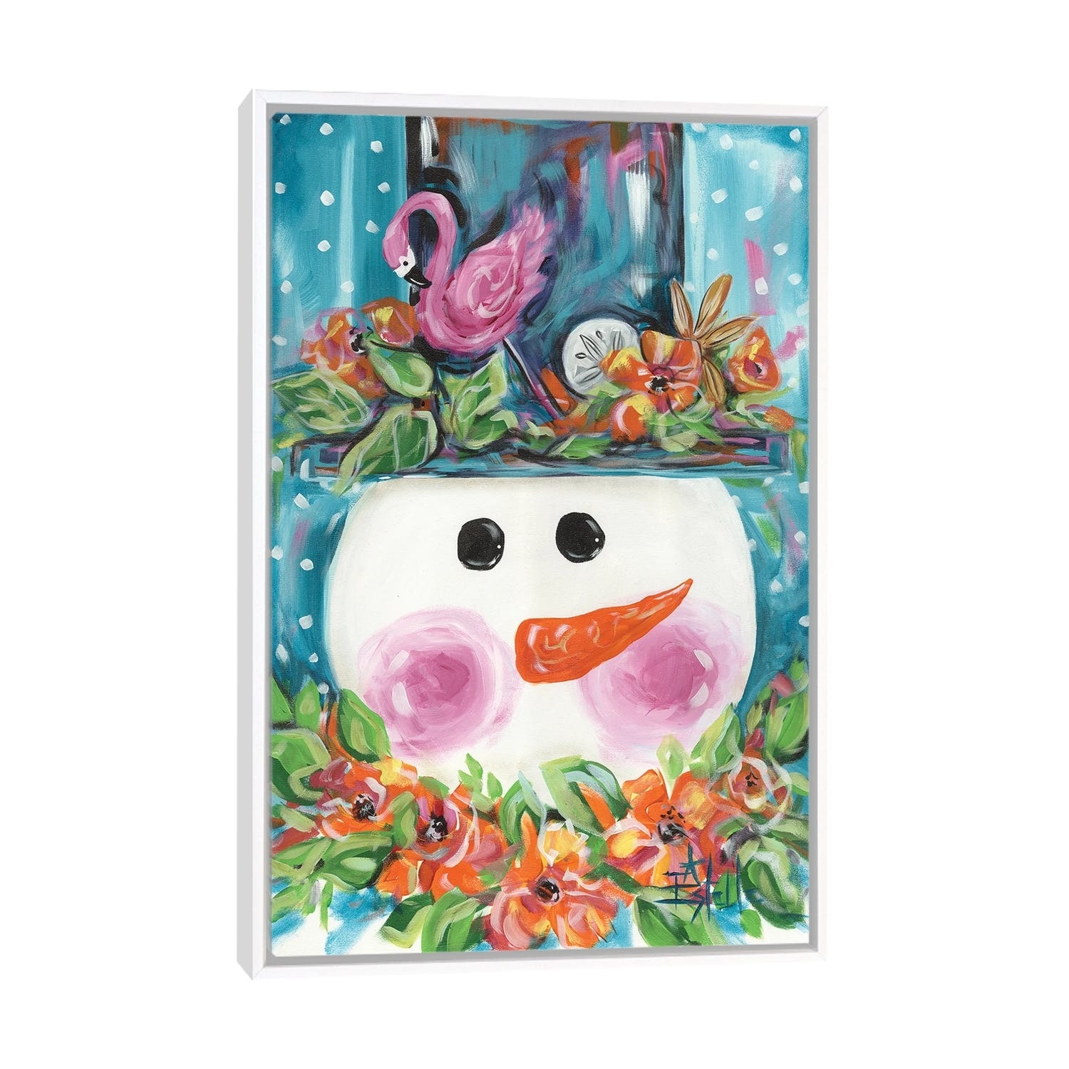 iCanvas "Snowman With Flamingo Hat" by Estelle Grengs Framed